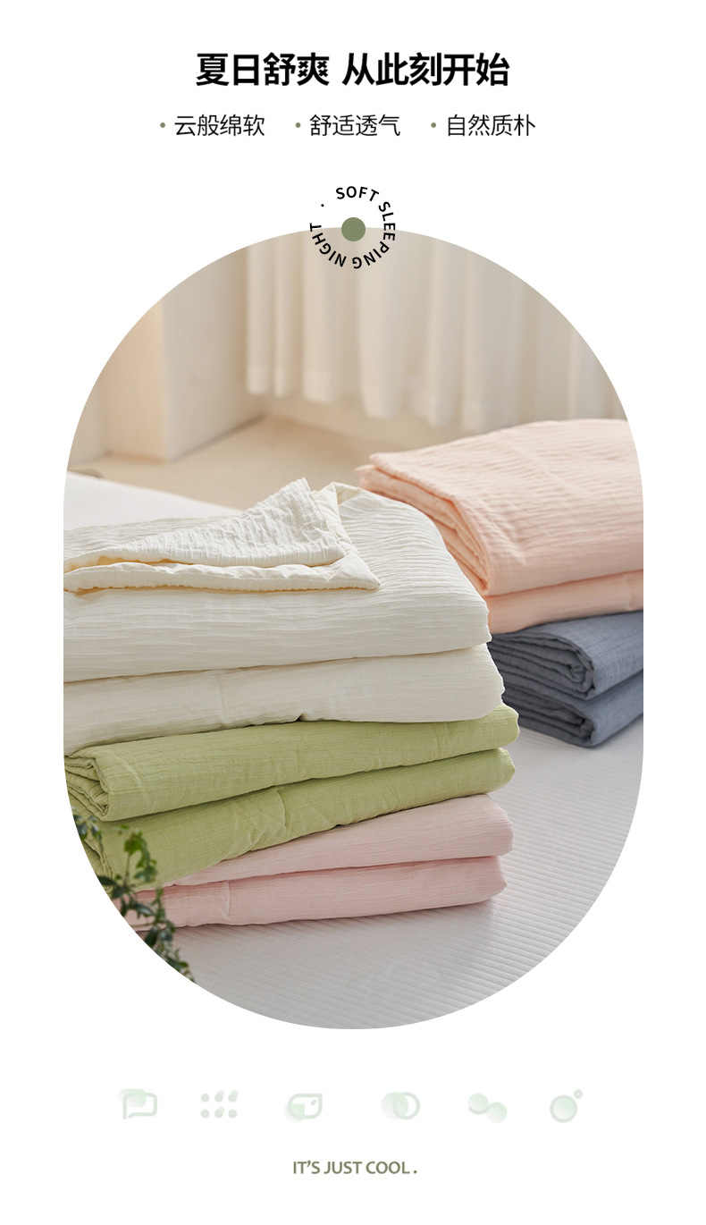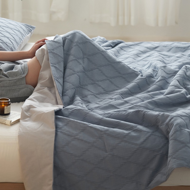 26 ° C 면 니트 면 주름 원사 여름 쿨 이불 쓰리 피스 여름 면 에어컨 이불 얇은 이불 기계 빨스토어 가기