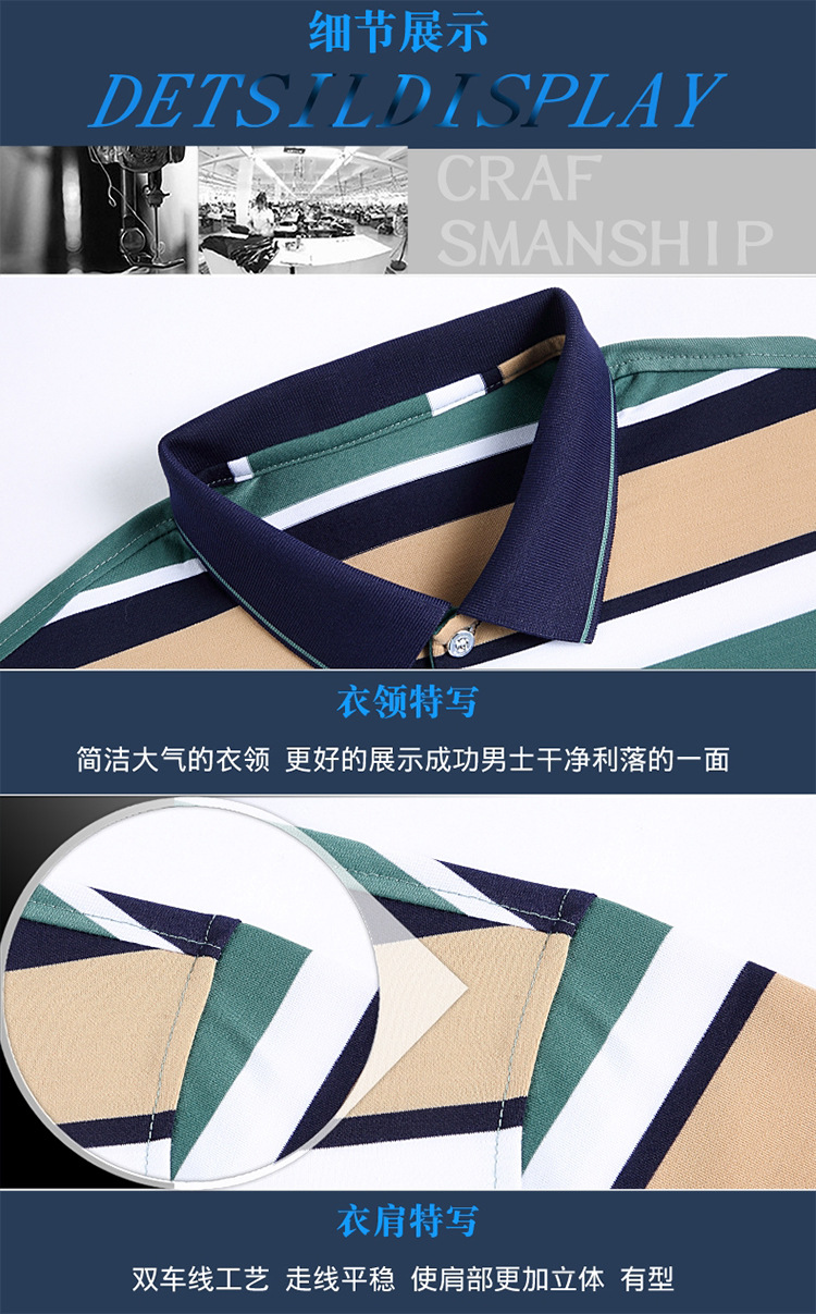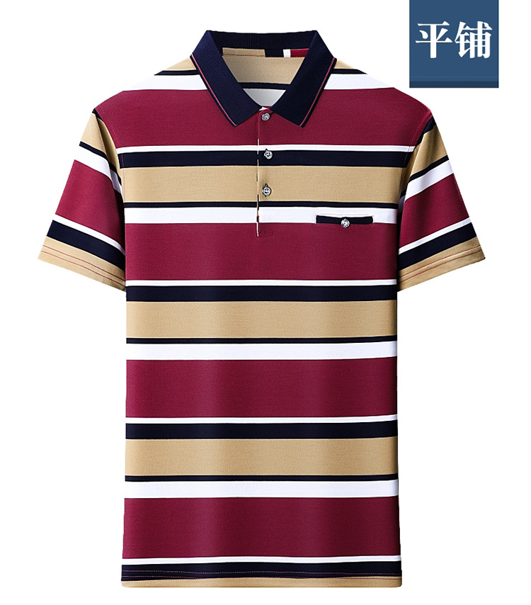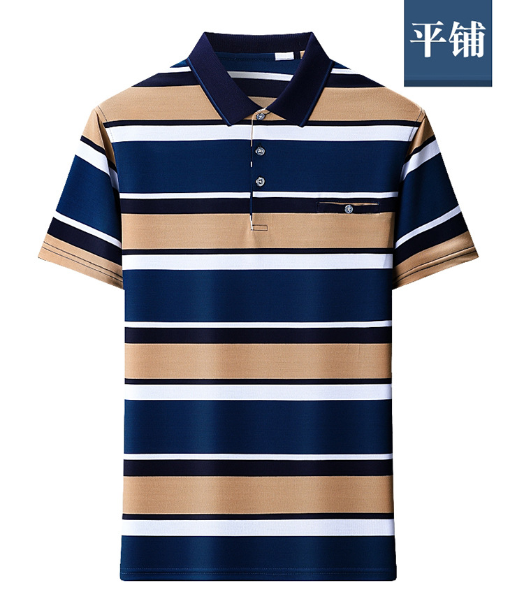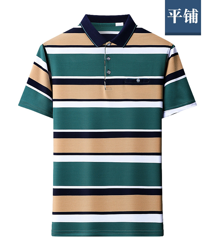 2023男士经典条纹上衣中青年休闲男装翻领短袖T恤凉感汗衫薄体恤