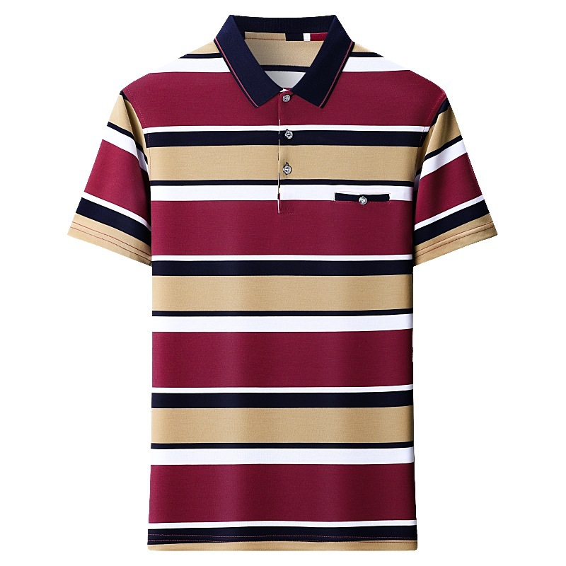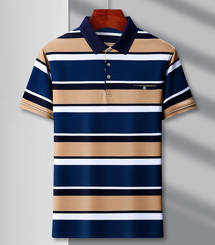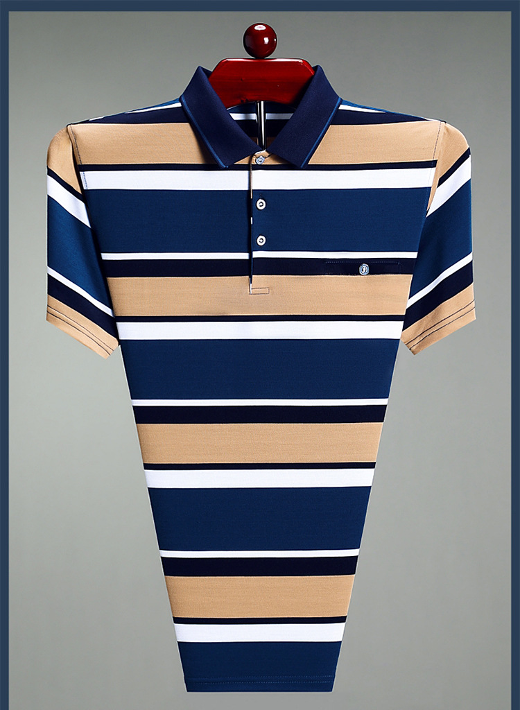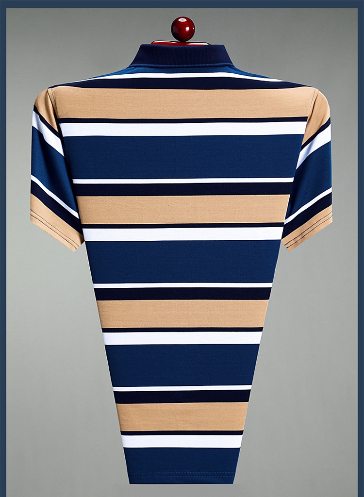 2023 남성용 클래식 스트라이프 탑 영 및 중년 캐주얼 남성용 라펠 반팔 티셔츠 시원한 느낌 언더셔츠 얇은 티셔츠