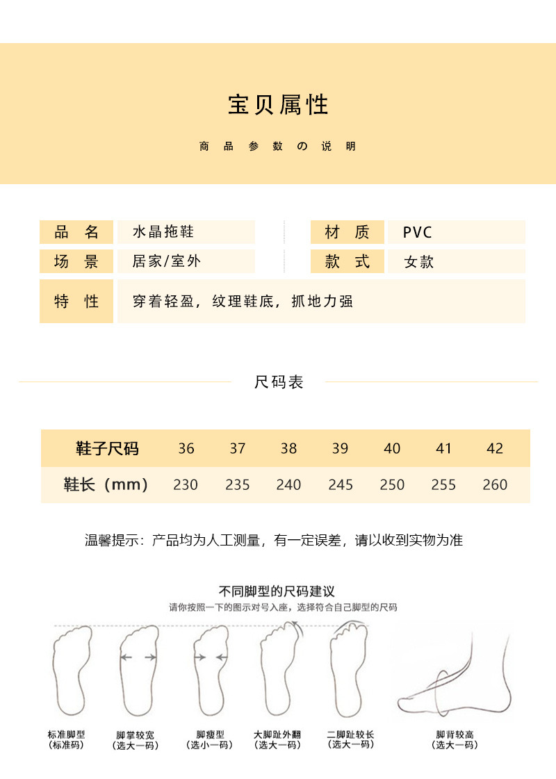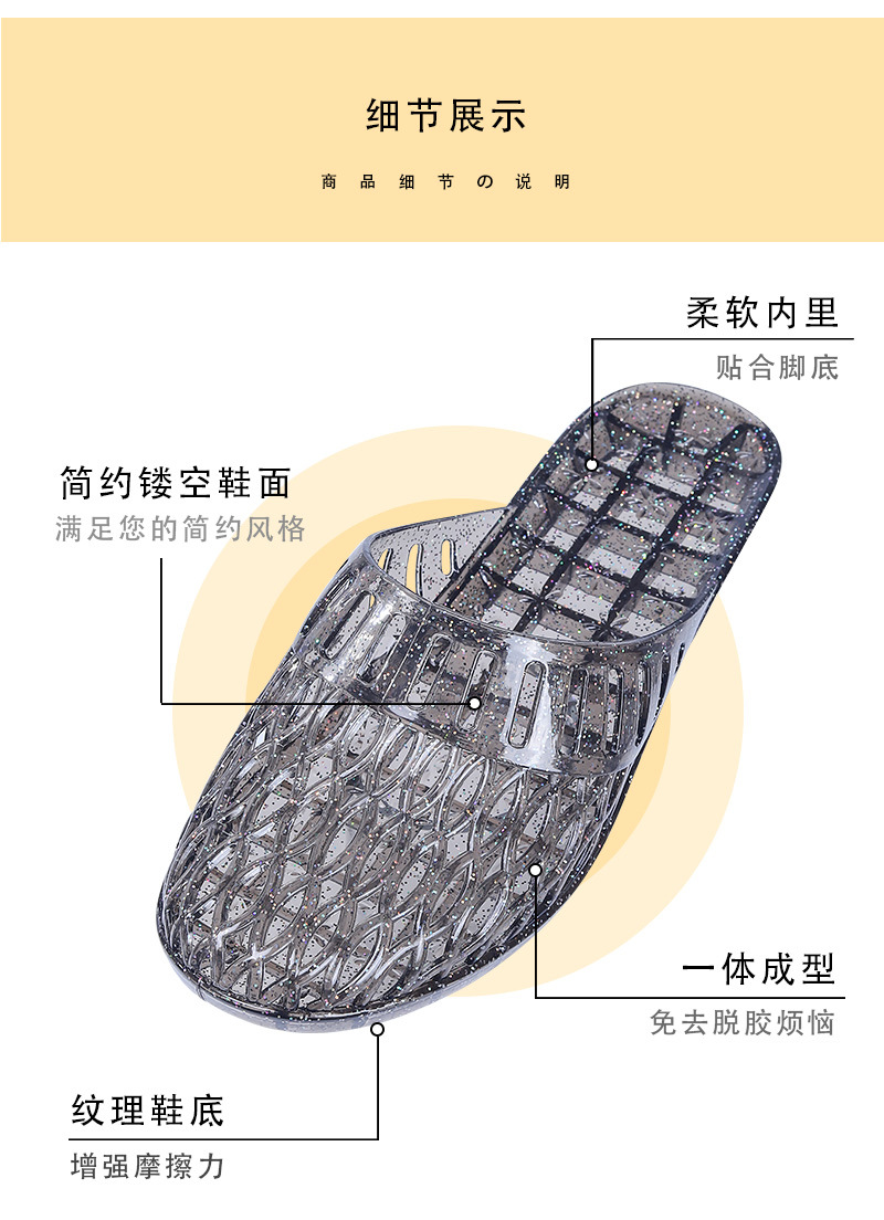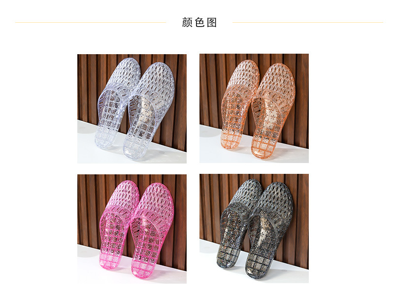 플랫 크리스탈 앞코가 막힌 반슬리퍼 여성용 투명 젤리 플라스틱 소재 중공 미끄럼 방지 욕실 실내외 여름용스토어 가기