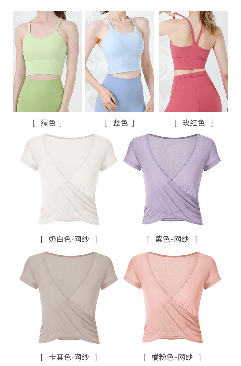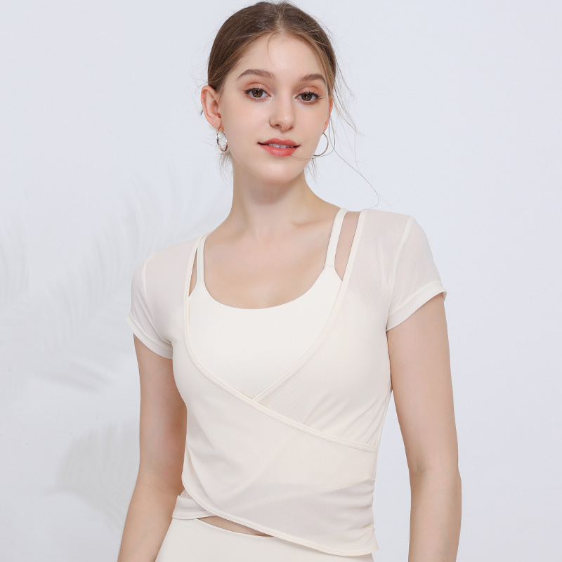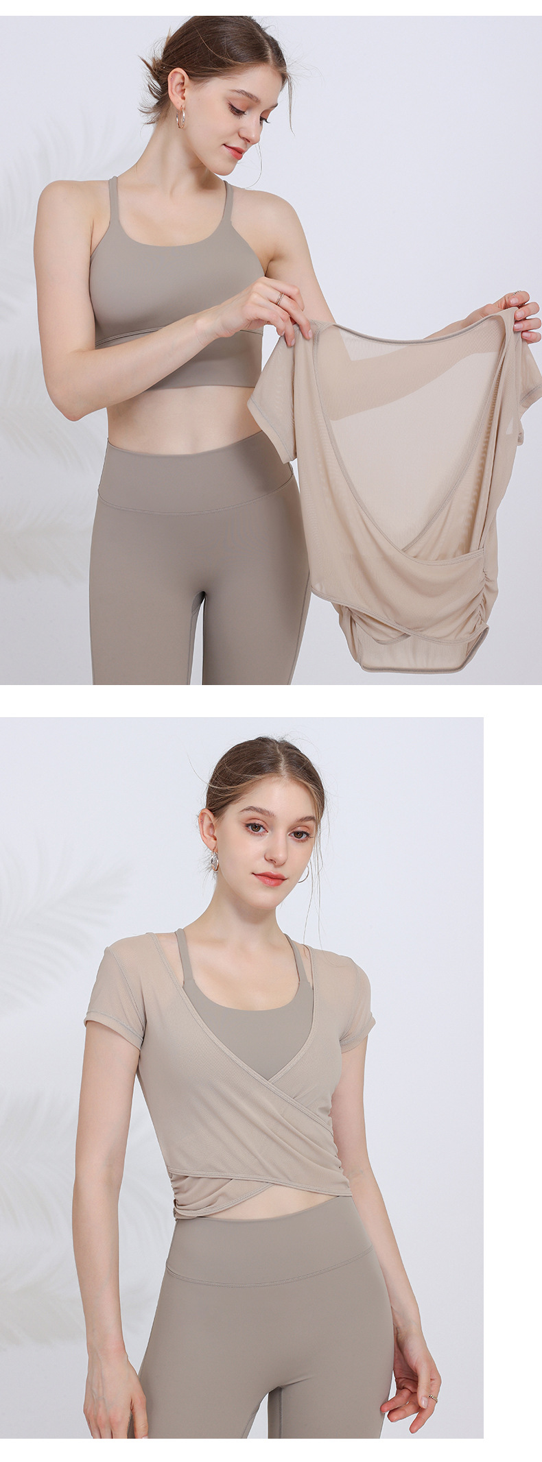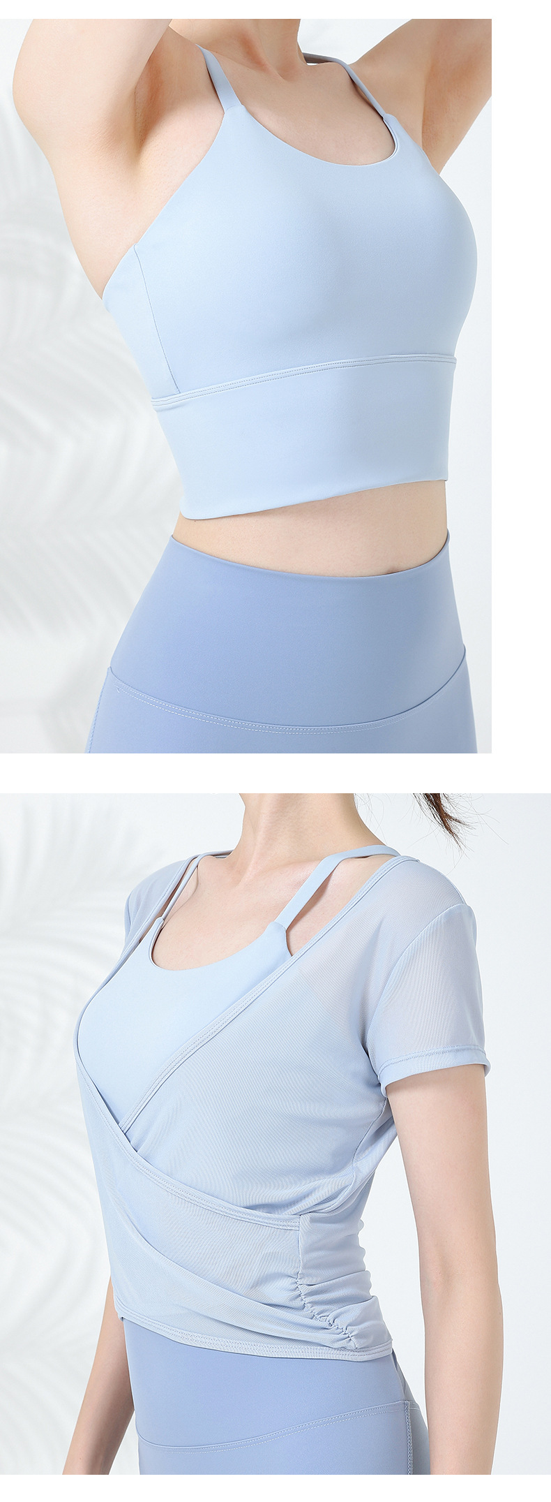 진짜 투피스 인터넷 연예인 스포츠 세트 익스텐더 메쉬 겉옷 피트니스 요가 브래지어 짧은 여름 요가 착용 탑