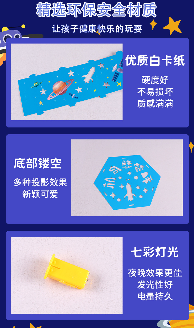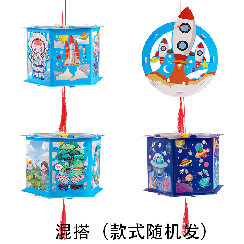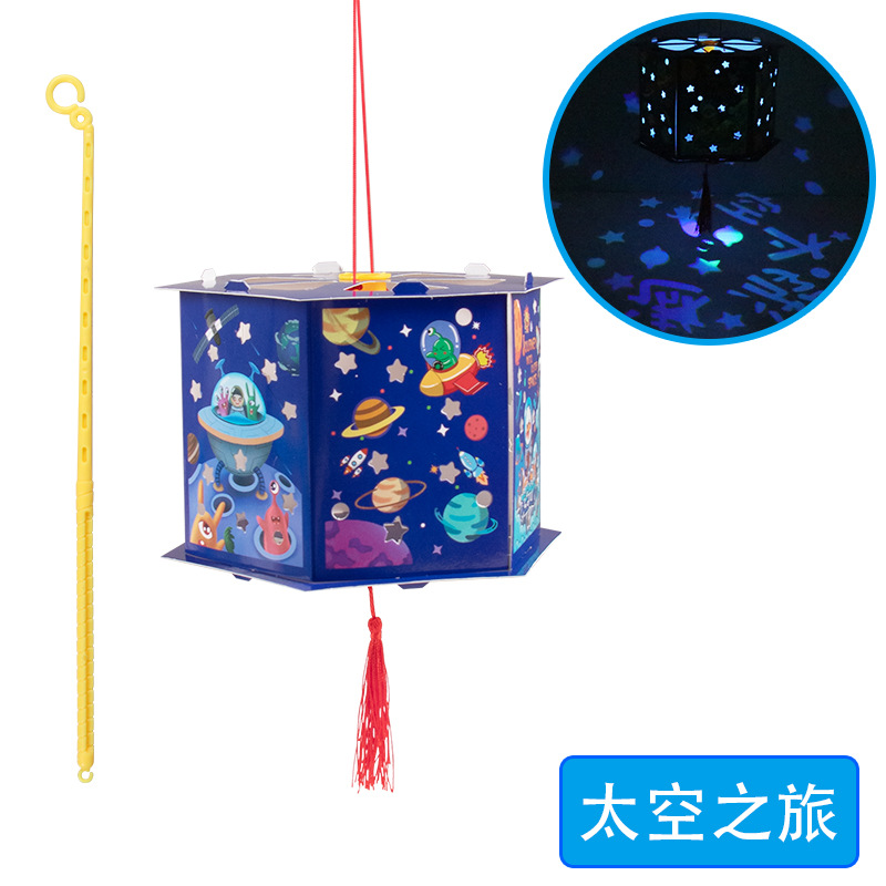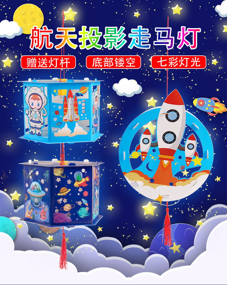 우주 항공 우주 프로젝션 말 랜턴 diy 어린이 수제 중추 축제 빛나는 휴대용 스톨 장난감 야시장 폭발