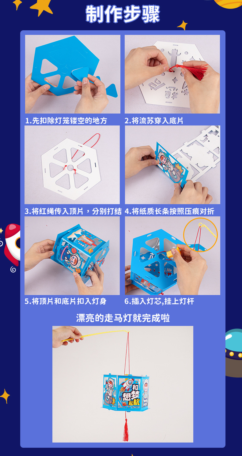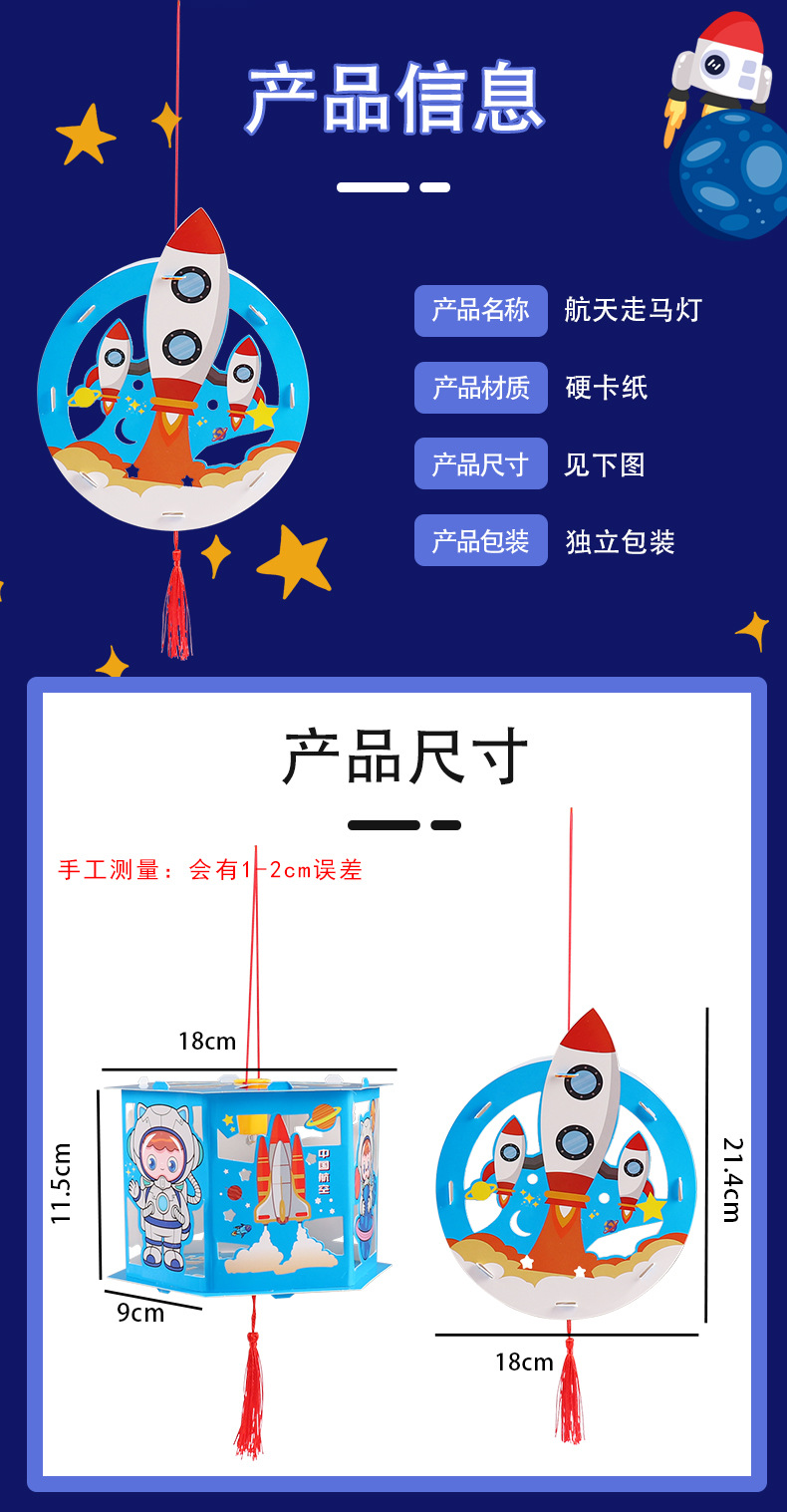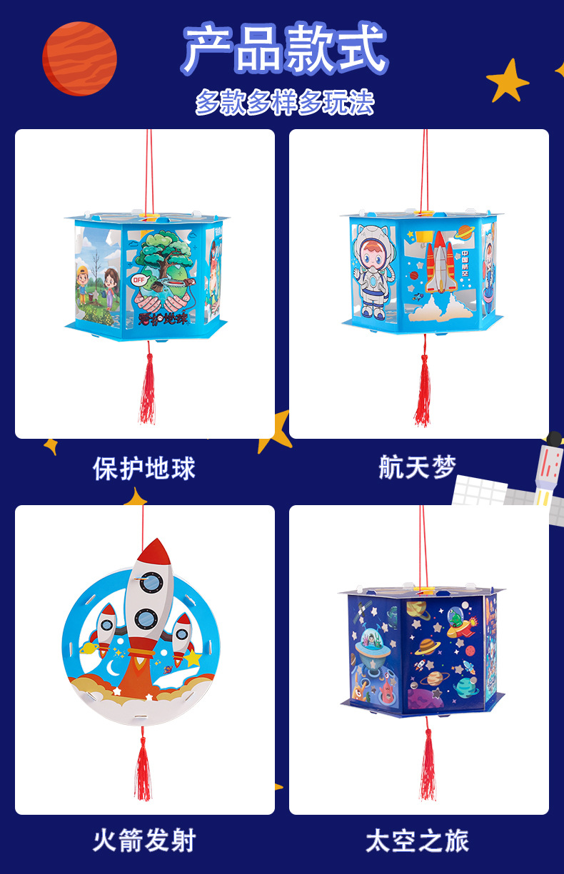 우주 항공 우주 프로젝션 말 랜턴 diy 어린이 수제 중추 축제 빛나는 휴대용 스톨 장난감 야시장 폭발
