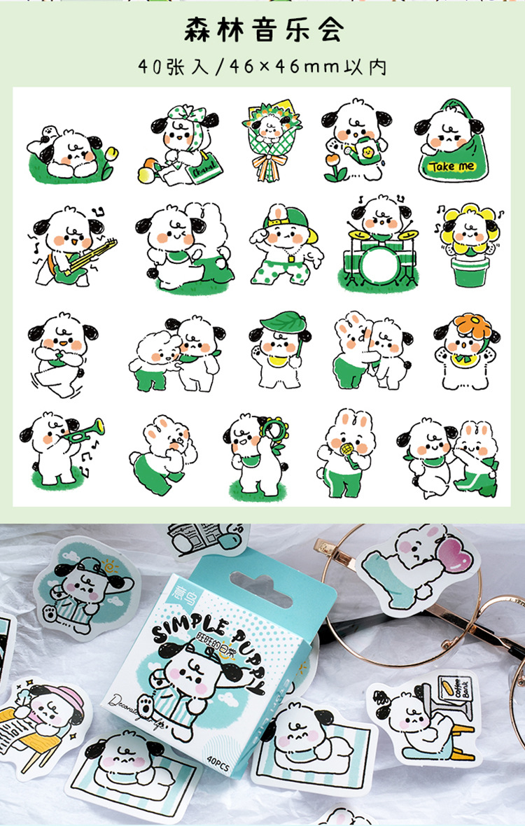 이탈리아 새 간단한 강아지 Wangwang 시리즈 박스 스티커 동물 만화 손 계정 사진 앨범 DIY 장식 6