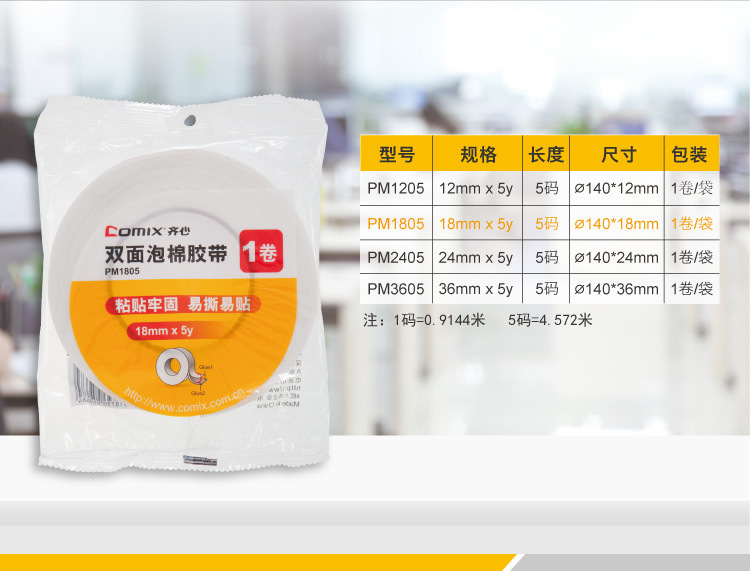 • Qixin PM1805 폼 양면 테이프 18mm*5y-1롤(1튜브에 10롤을 가져가세요)