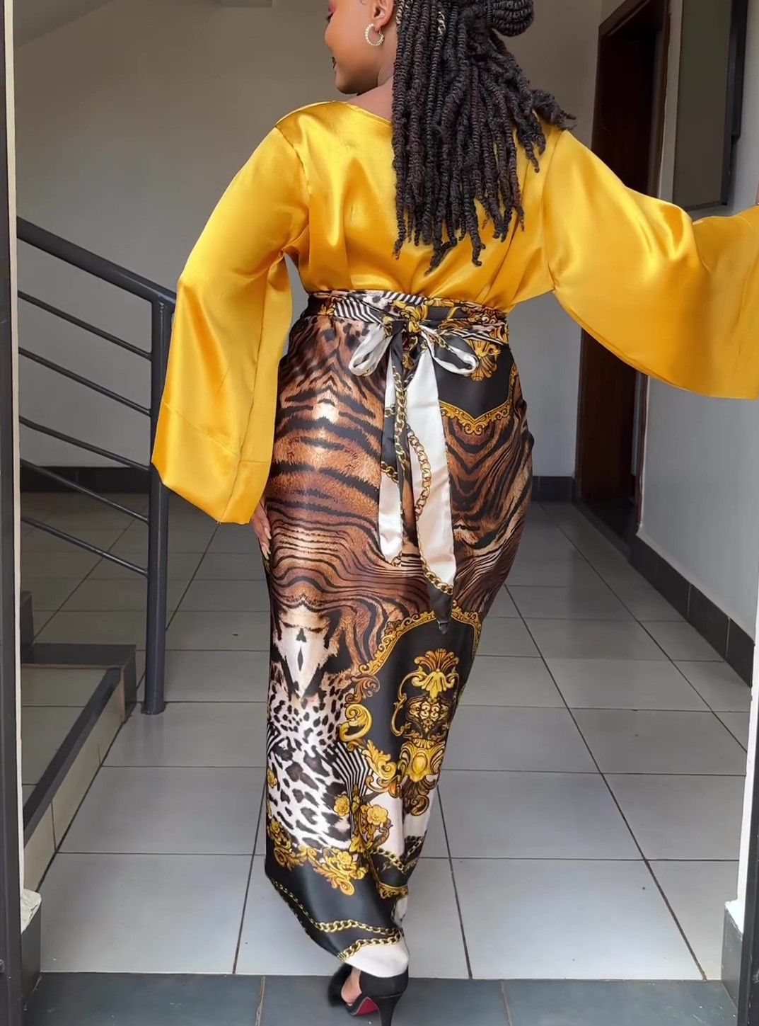 유럽과 미국의 2024 새로운 여성 의류 맞춤형 패션 허리 스트랩 디지털 인쇄 기질 원피스 세트 반소매 천
