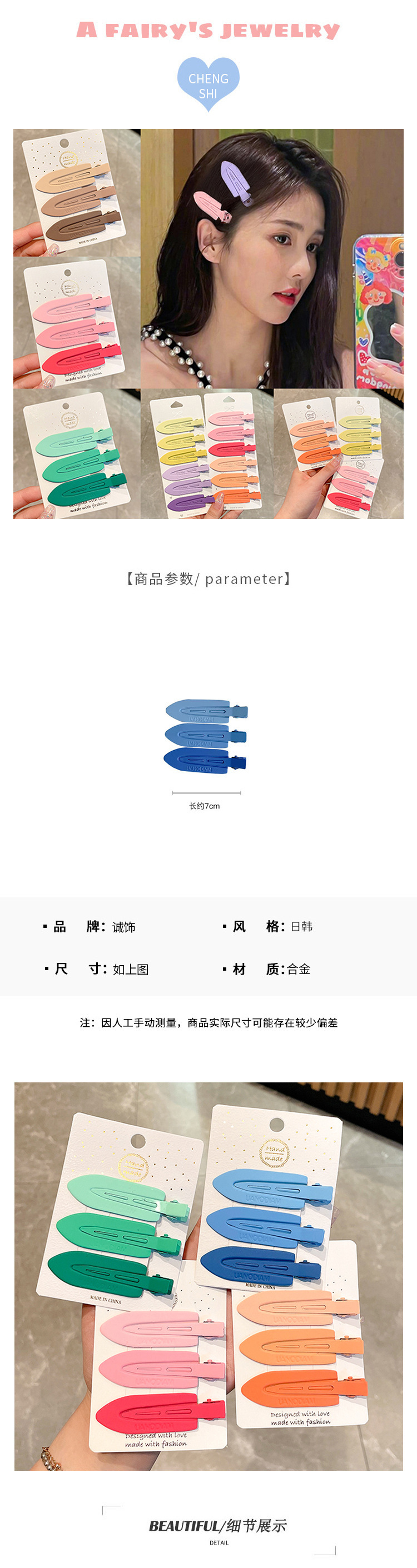 흰 사슴 같은 원활한 머리핀 여자의 측면 전면 앞머리 사이드 클립 작은 클립 메이크업 머리핀 Duckbill 클립 머리 장식
