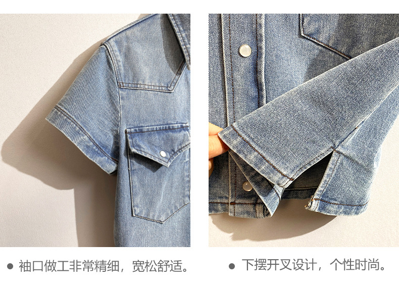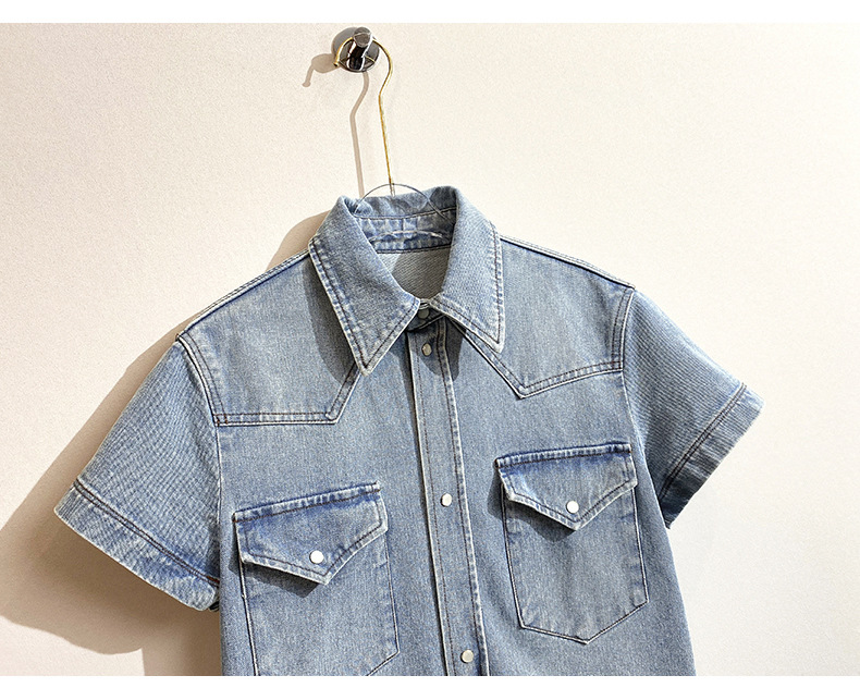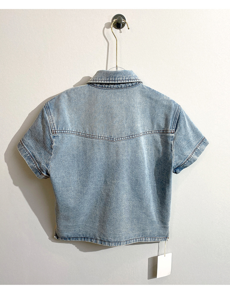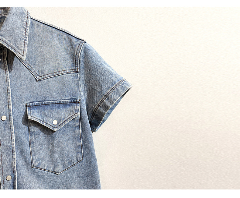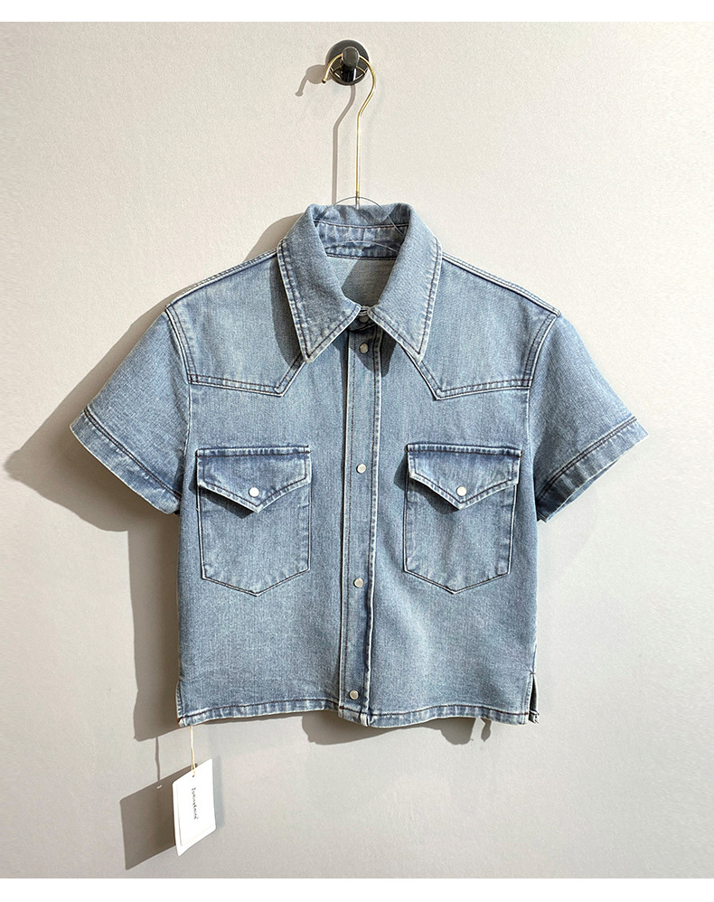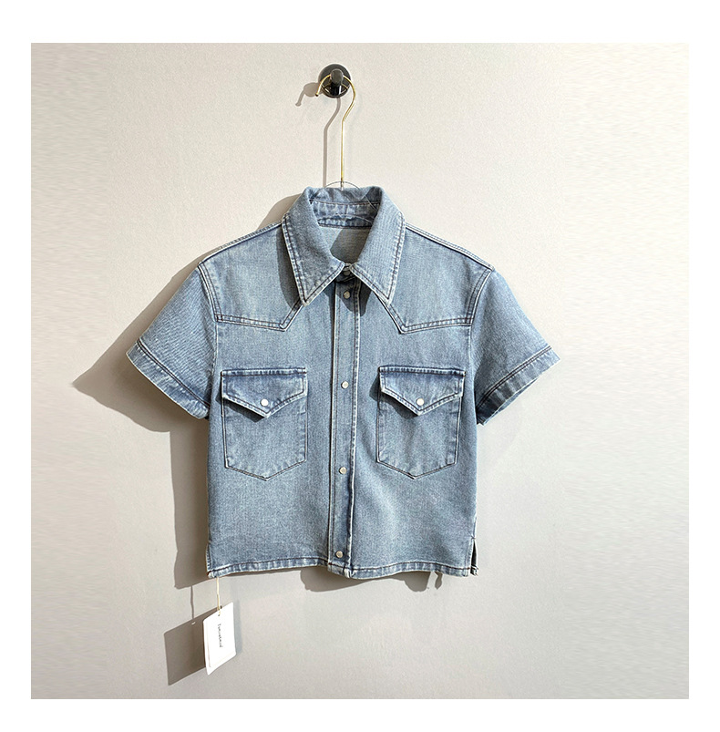 틈새 2023 봄과 여름 새 씻은 올드 데님 셔츠 반소매 싱글 브레스트 반소매 셔츠 올 매치 탑
