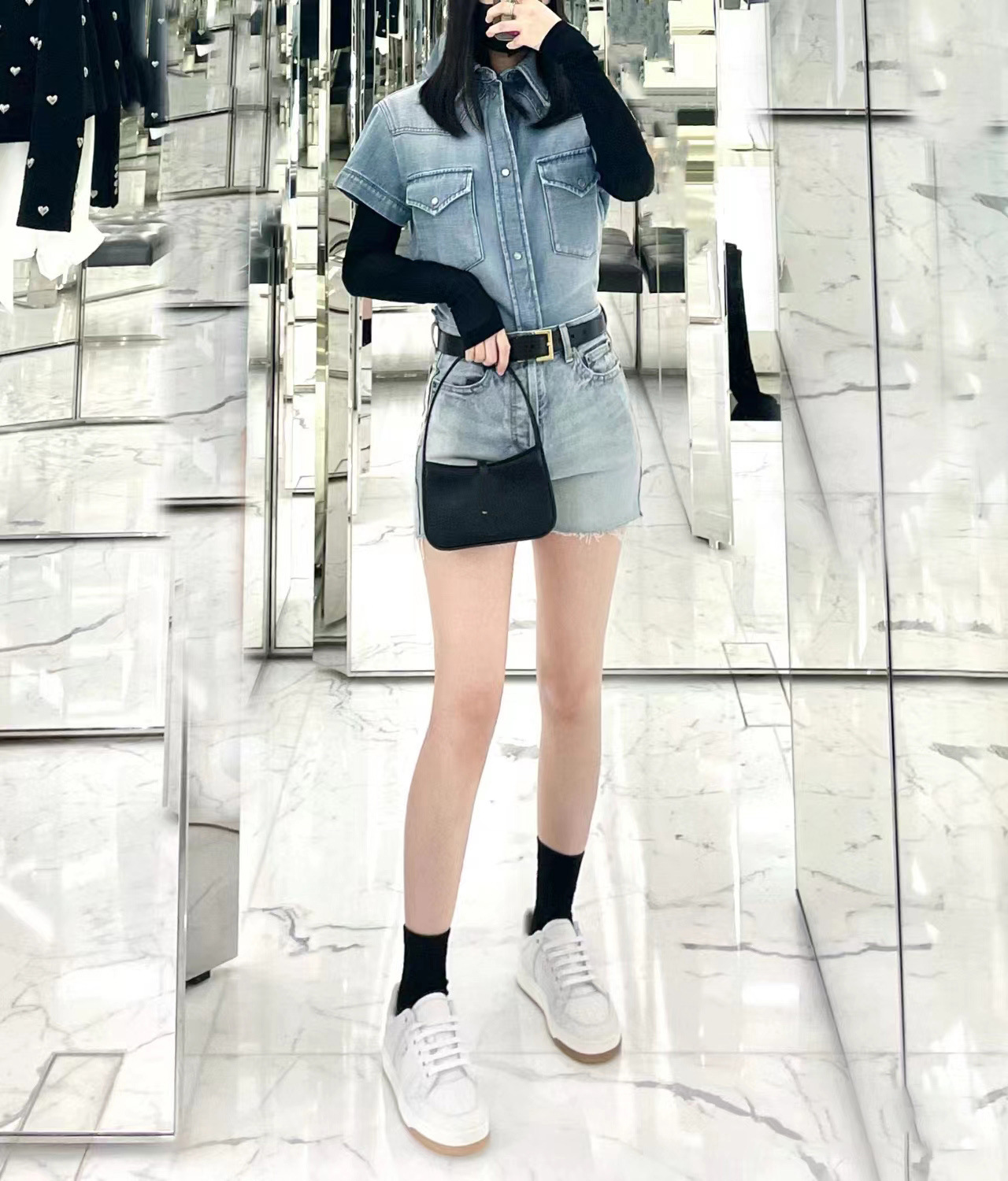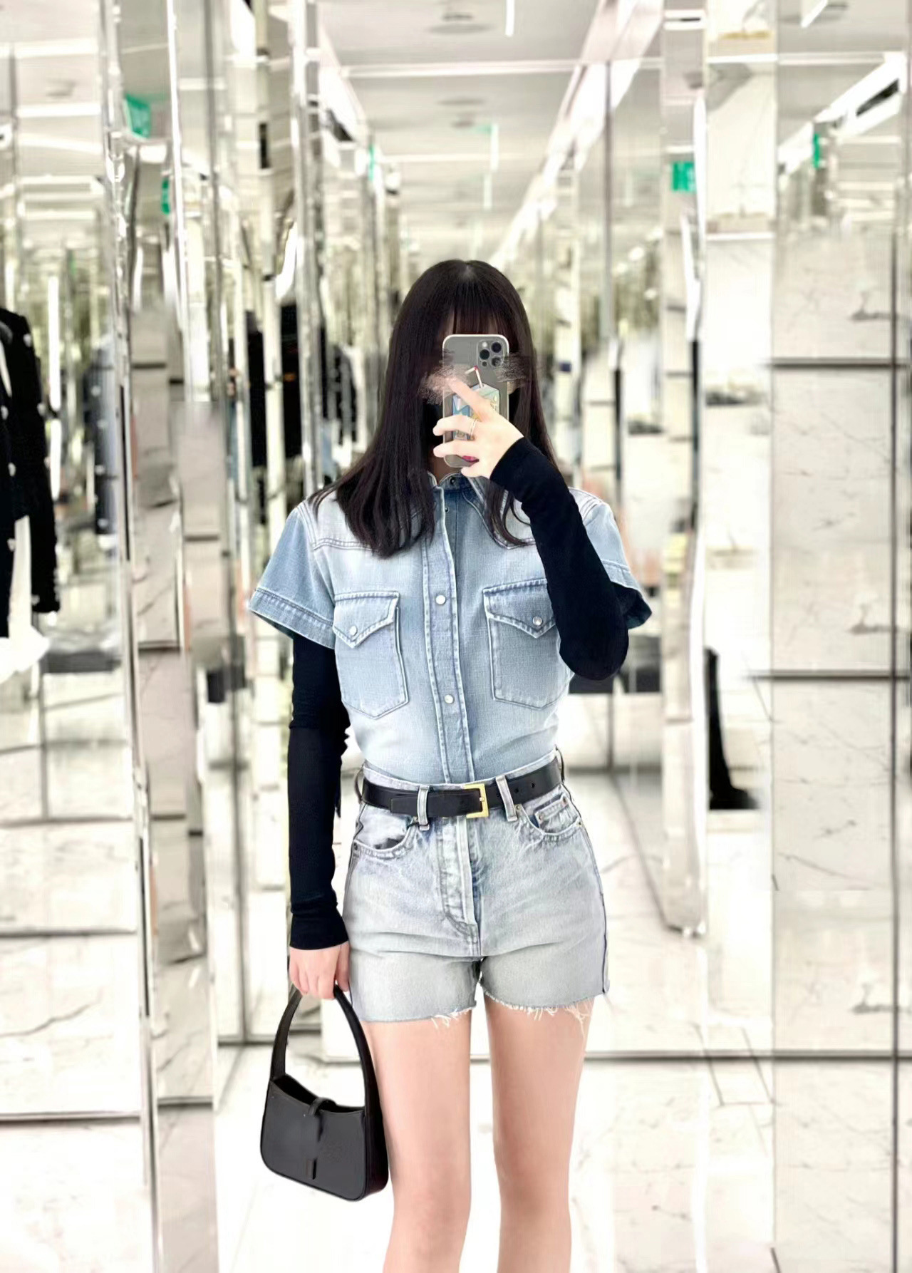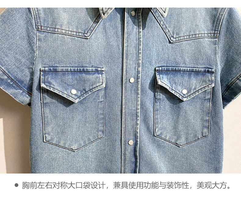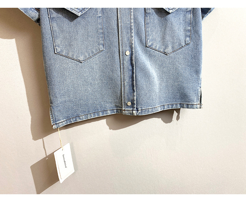틈새 2023 봄과 여름 새 씻은 올드 데님 셔츠 반소매 싱글 브레스트 반소매 셔츠 올 매치 탑