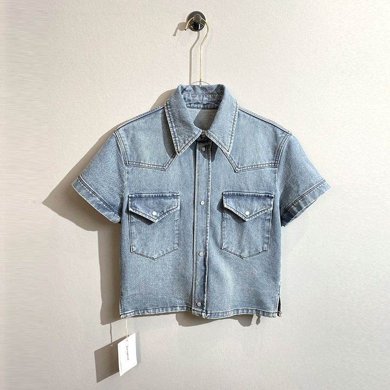 틈새 2023 봄과 여름 새 씻은 올드 데님 셔츠 반소매 싱글 브레스트 반소매 셔츠 올 매치 탑스토어 가기