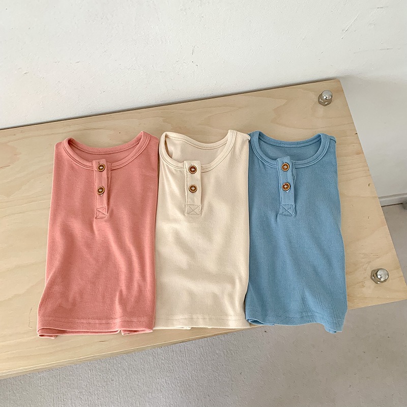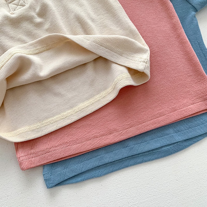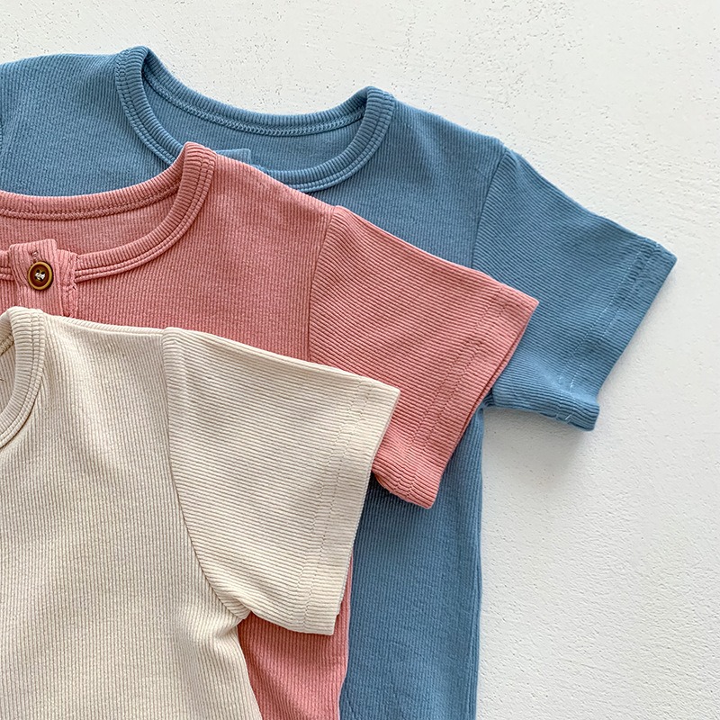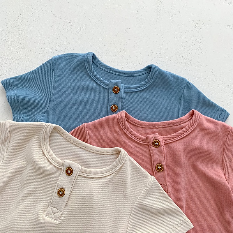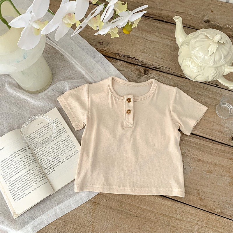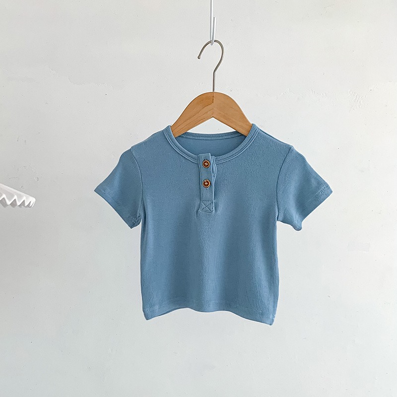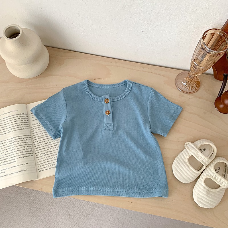 2024 여름 아기 반팔 티셔츠 얇은 아기 크루 넥 반소매 탑 어린이 솔리드 컬러 올매치 베이스 셔츠 트렌디스토어 가기