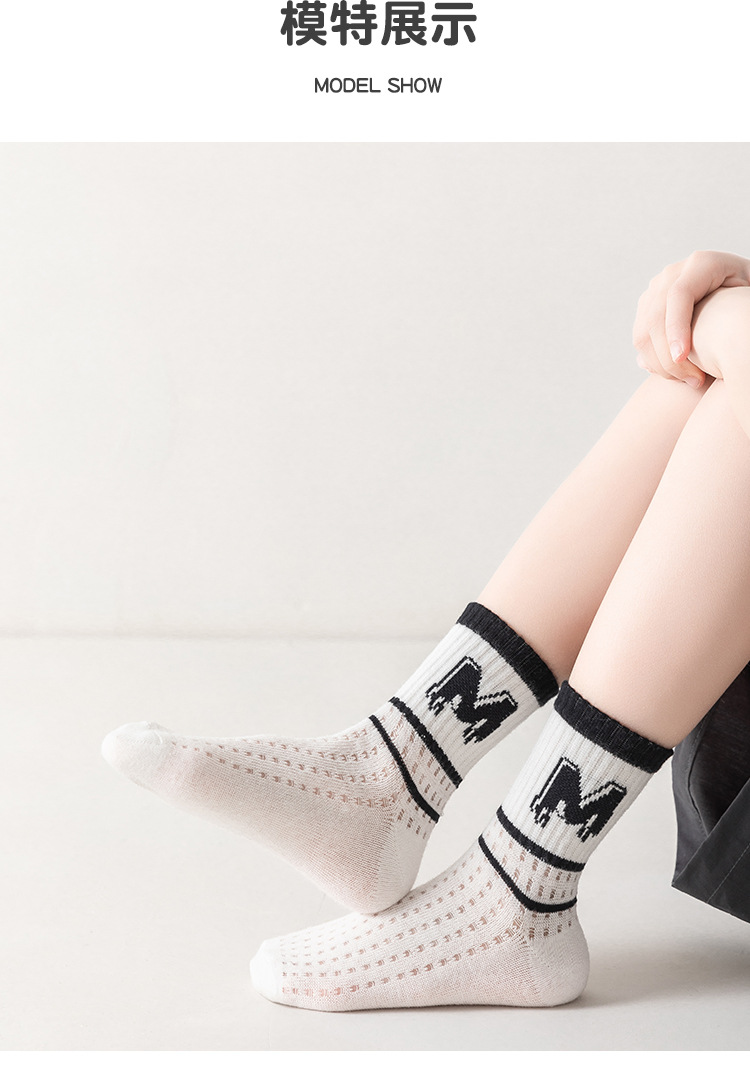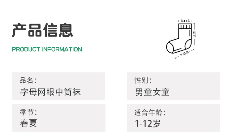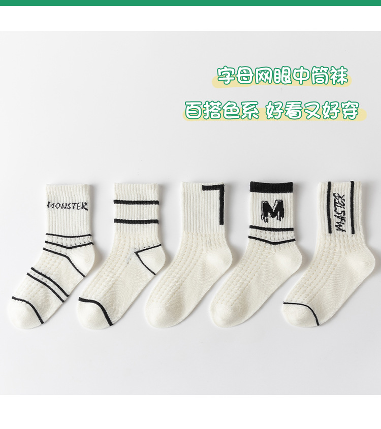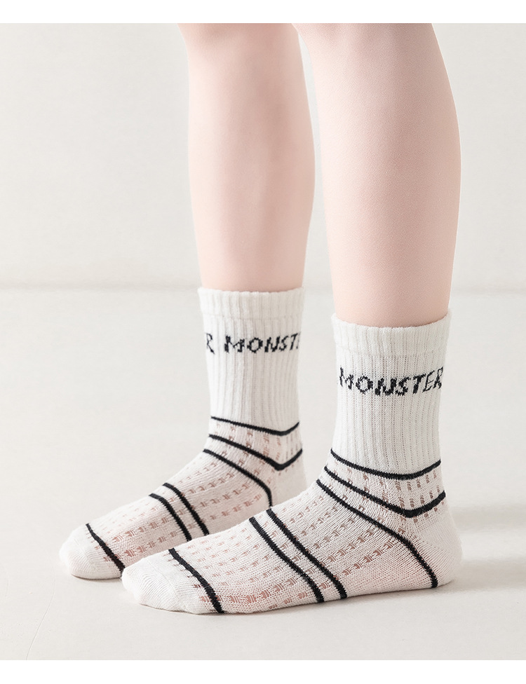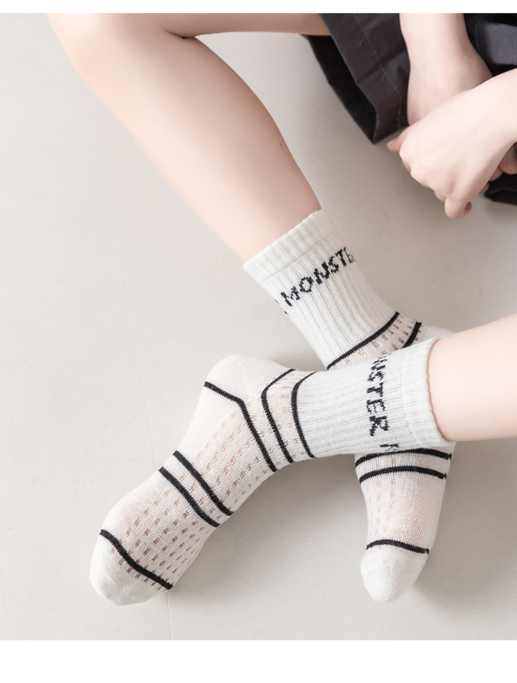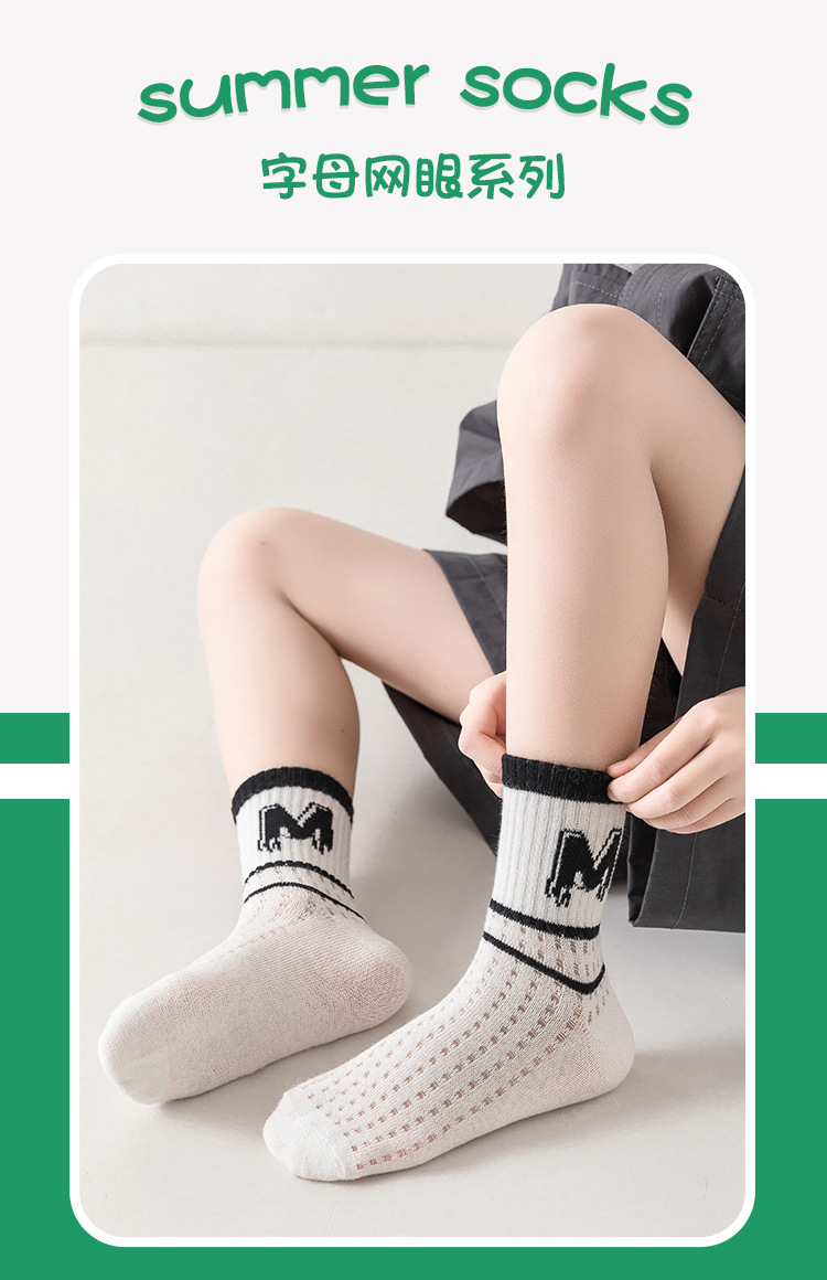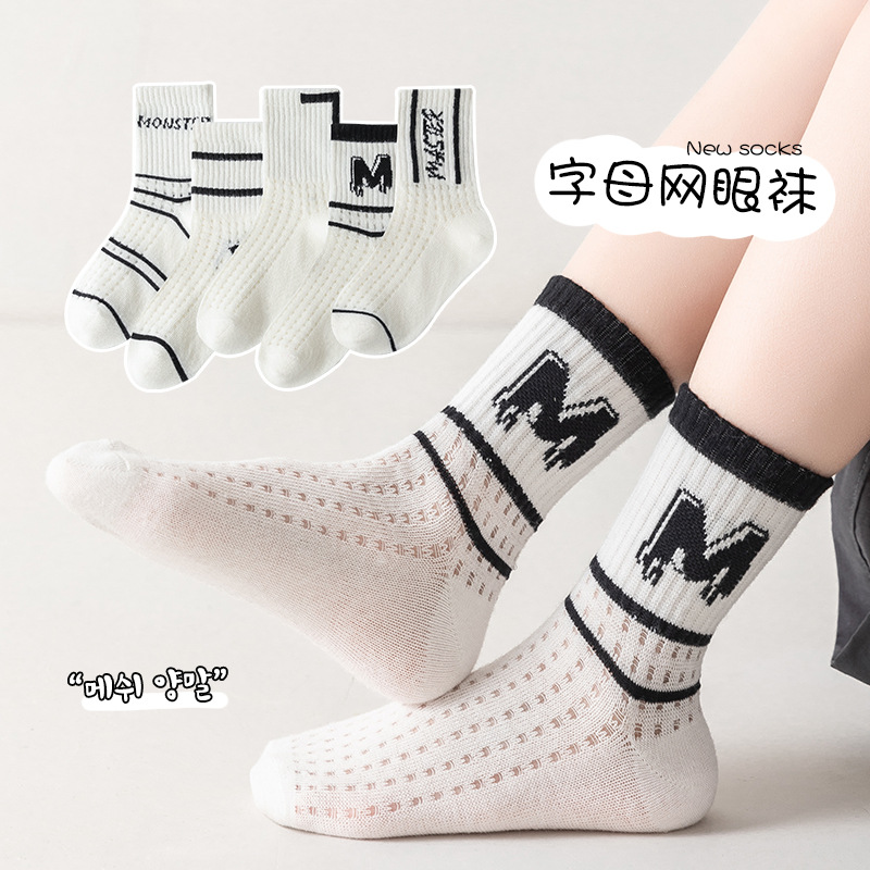 어린이 양말 봄과 여름 소년 한국 스타일 메쉬 양말 통기성 얇은 편지 유행 양말 여아 아기의 중간 길이 양말