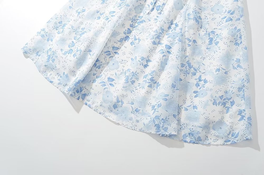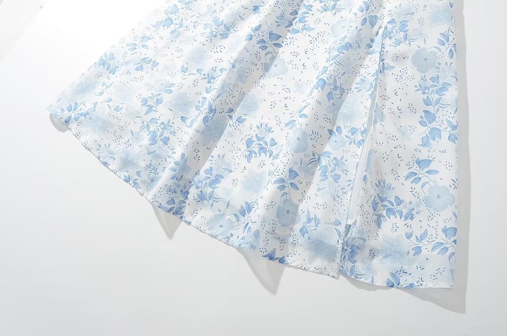 프렌치 빈티지 로우 넥 와이드 스트랩 슬링 원피스 졸라매는 끈 허리 슬리밍 롱 스커트 사이드 슬릿 프린트 스커트스토어 가기