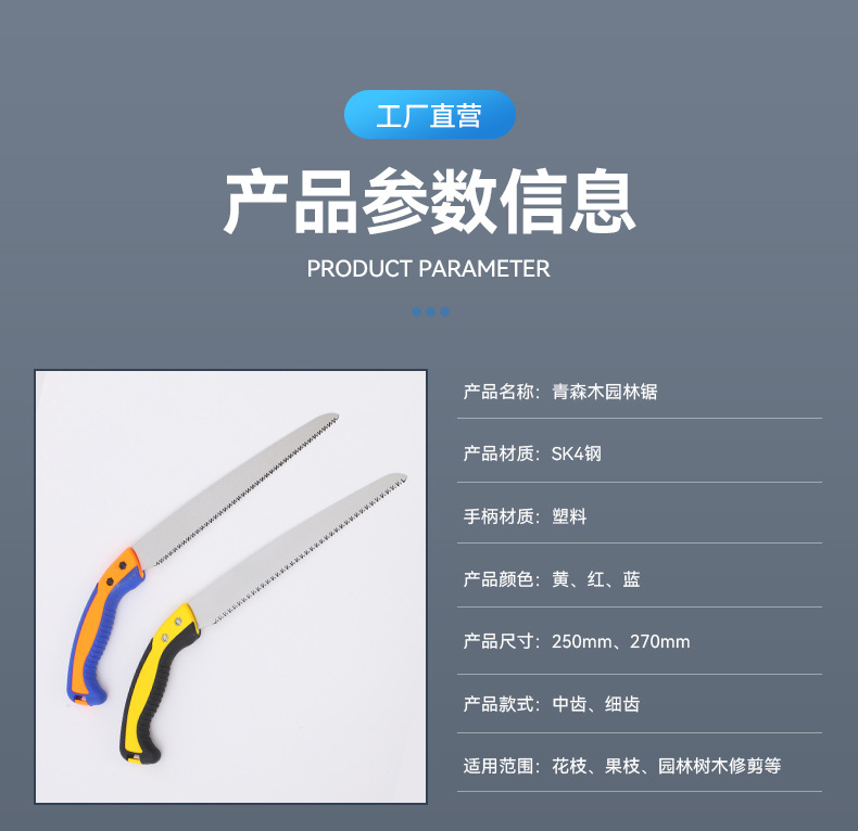 SK5250/270 정원용 톱 SK4 2색 핸드 톱 3면 톱니 고온 담금질 과수원 벌목 톱 2색 핸들스토어 가기