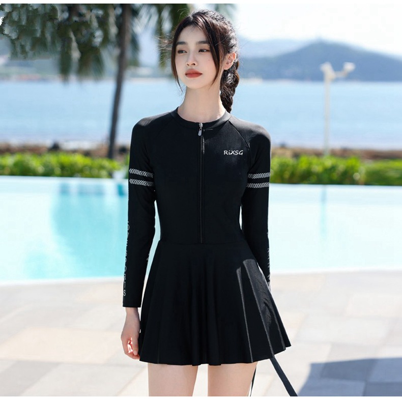 2023 새로운 수영 세트 여자 스플릿 플랫 앵글 보수적 슬림 배꼽 취재 스포츠 긴 소매 온천 훈련 수영복 학생스토어 가기