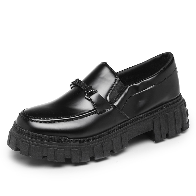 2025 봄 영국 스타일 가죽 신발 남성 두꺼운 밑창 신발 로우 컷 슬립 온 신발 로퍼 슬립 온 캐주얼 남성 신발
