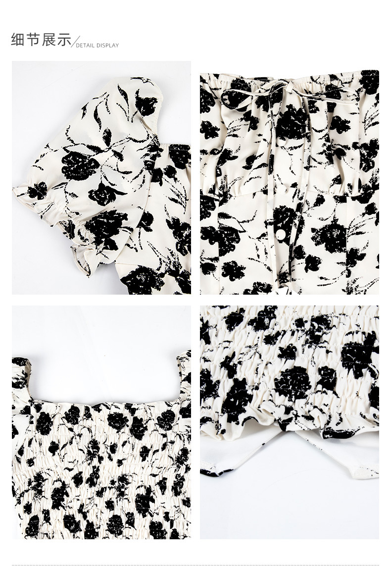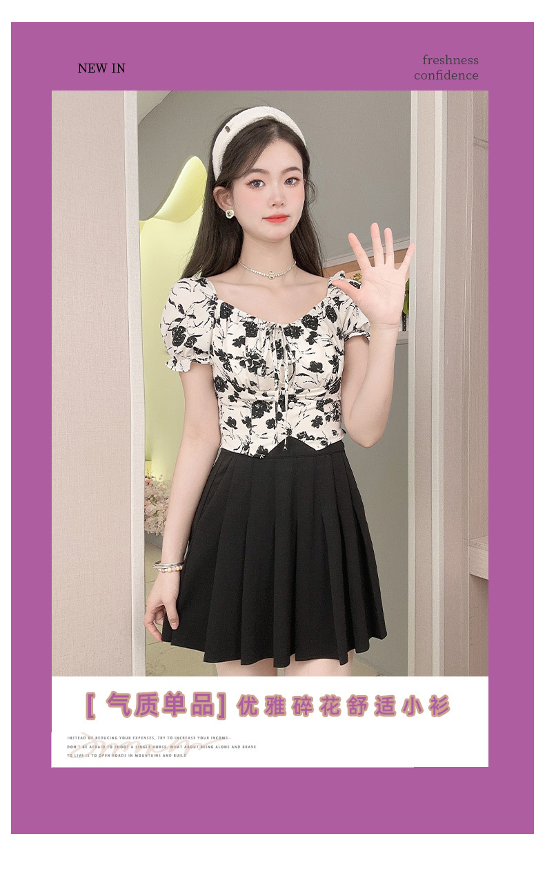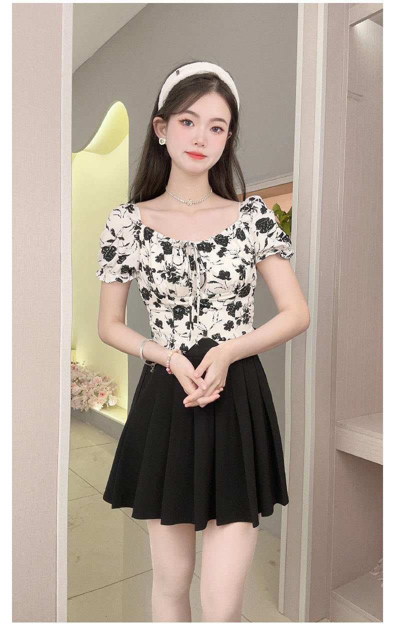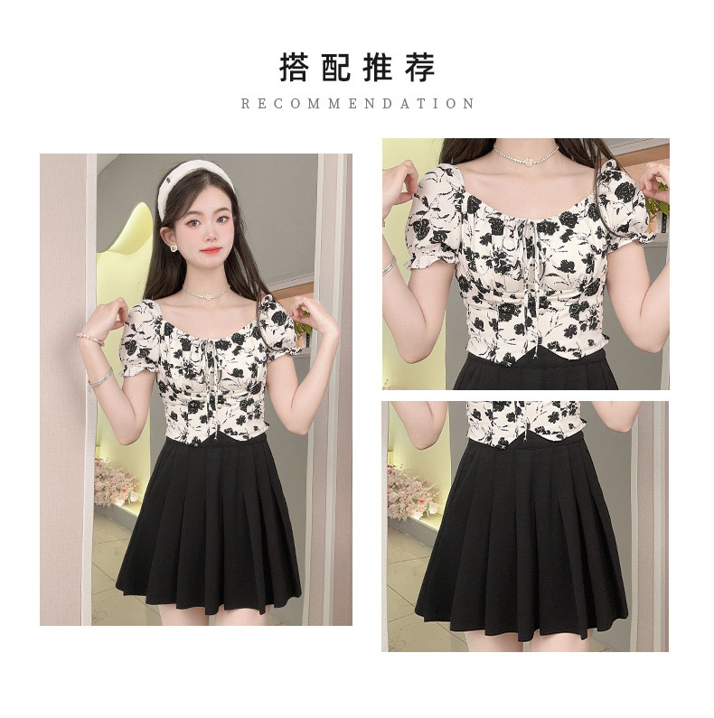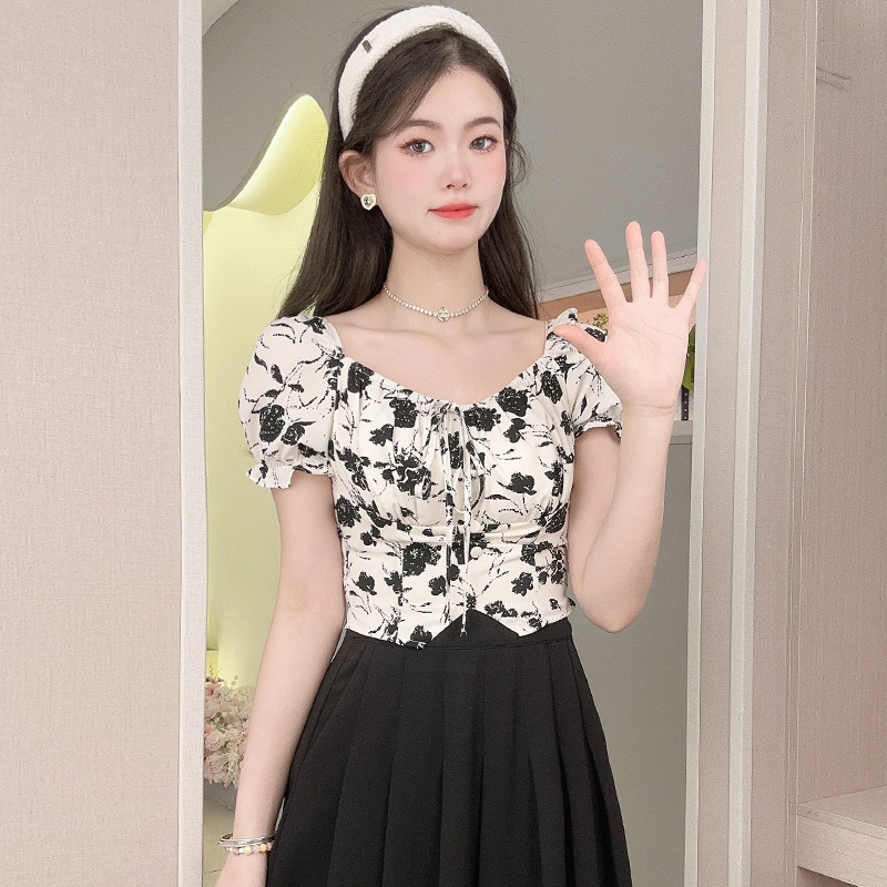 프랑스 스타일 스퀘어 칼라 꽃 쉬폰 셔츠 버블 슬리브 짧은 슬리밍 순수한 욕망 탑 여성의 디자인 감각 틈새 시크 작은 셔츠스토어 가기