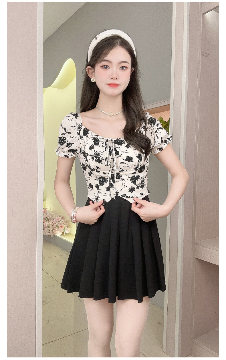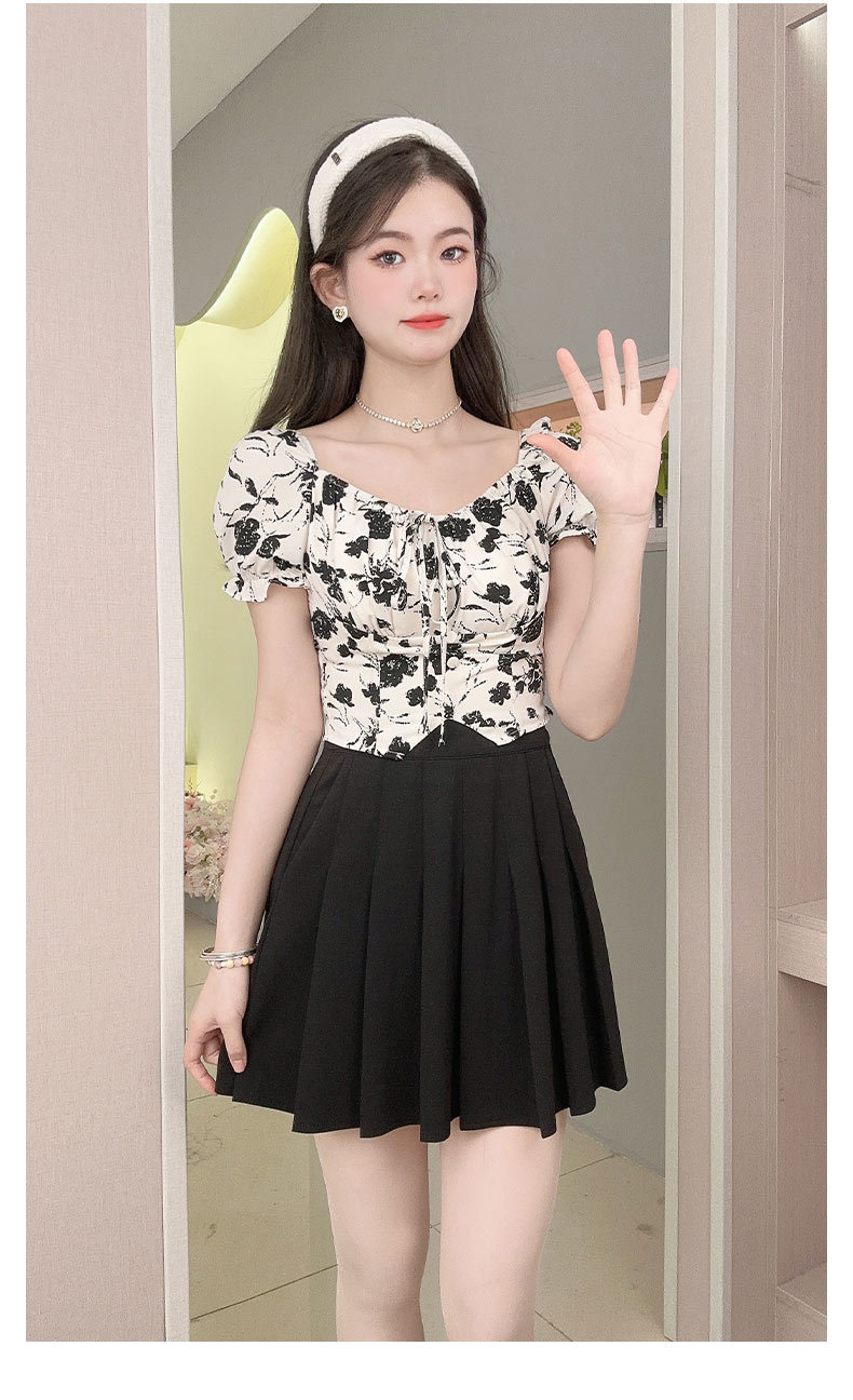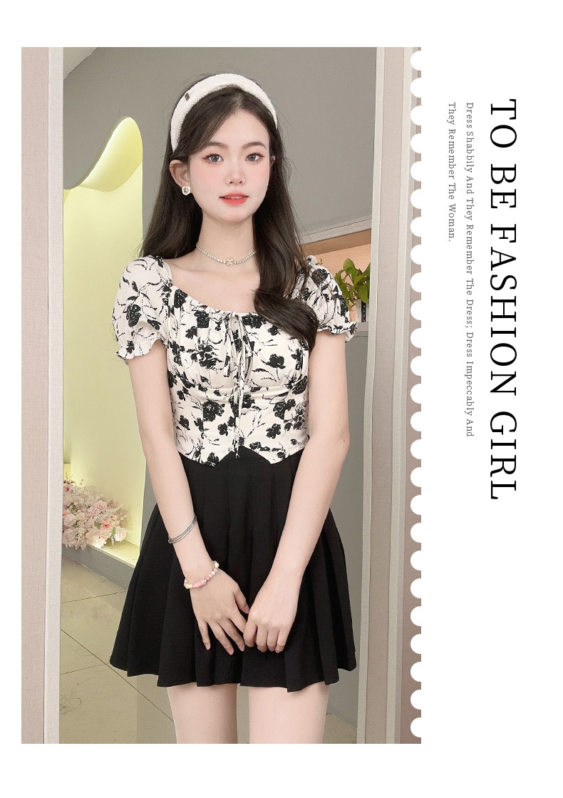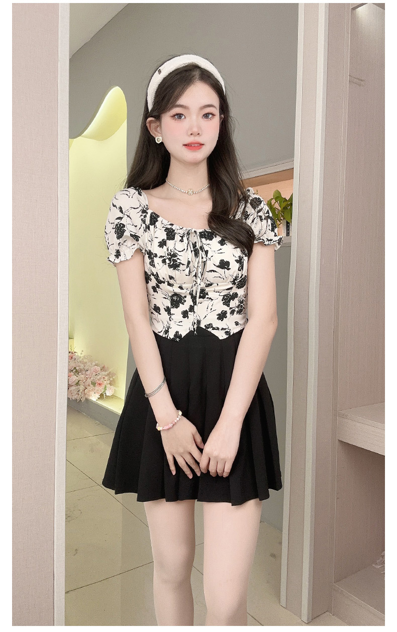 프랑스 스타일 스퀘어 칼라 꽃 쉬폰 셔츠 버블 슬리브 짧은 슬리밍 순수한 욕망 탑 여성의 디자인 감각 틈새 시크 작은 셔츠스토어 가기