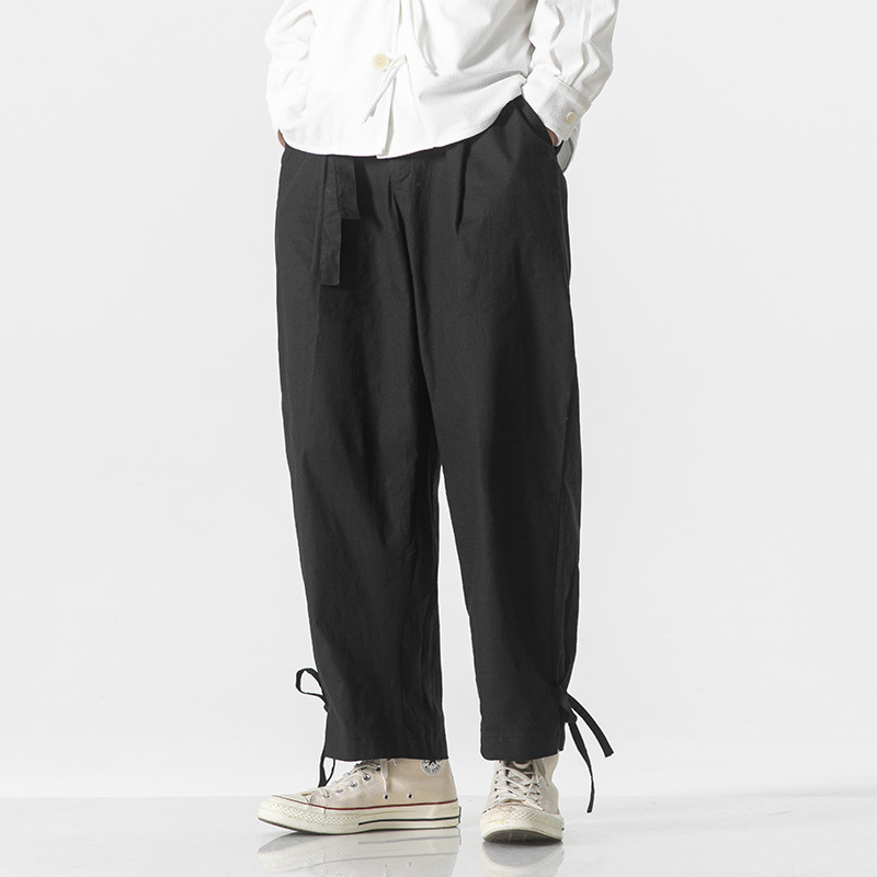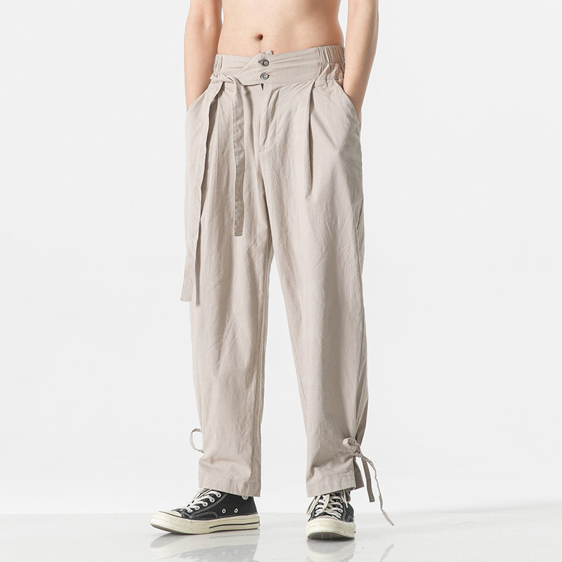 2023 여름 신상품 플러스 사이즈 면과 린넨 바지 패션 중국 스타일 린넨 느슨한 와이드 레그 바지 캐주얼 바지 남성 바지