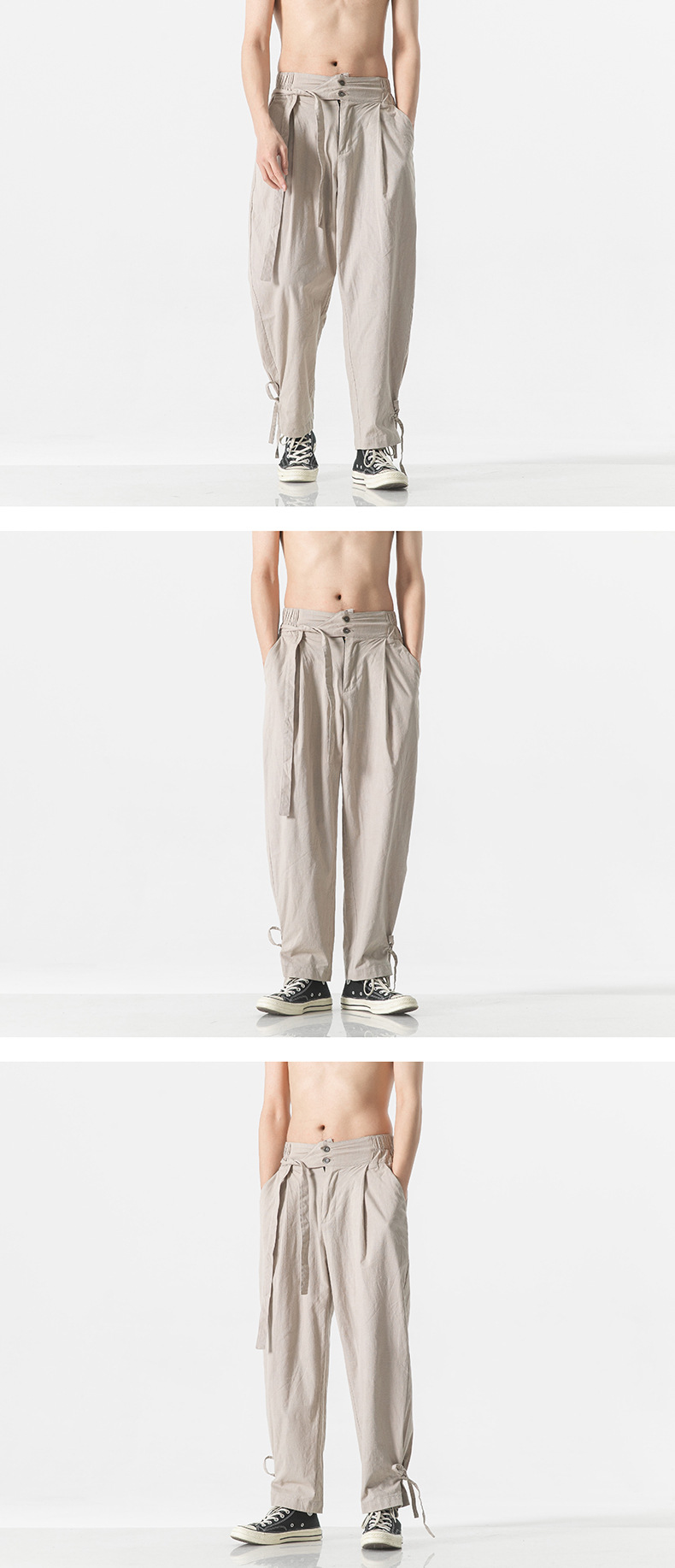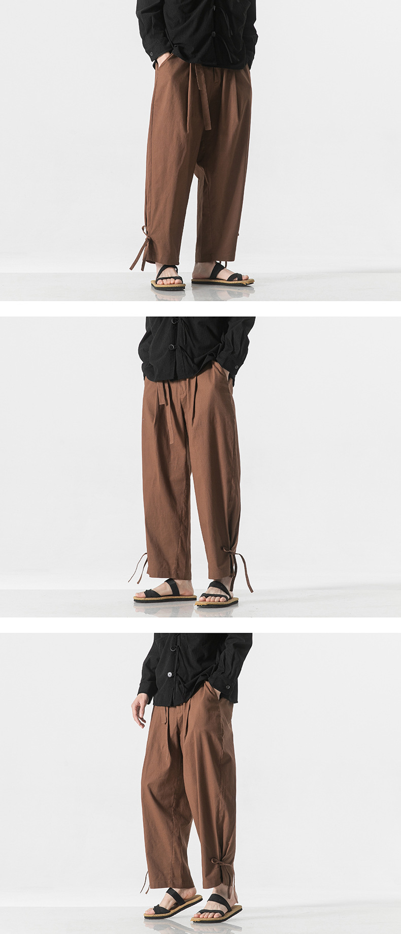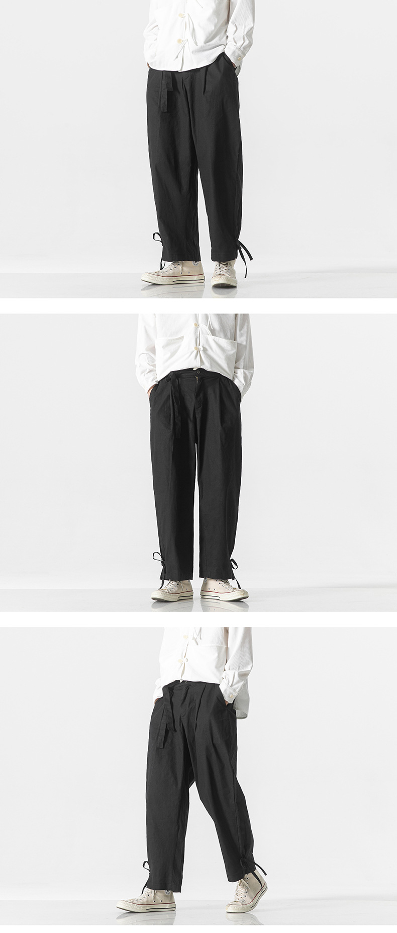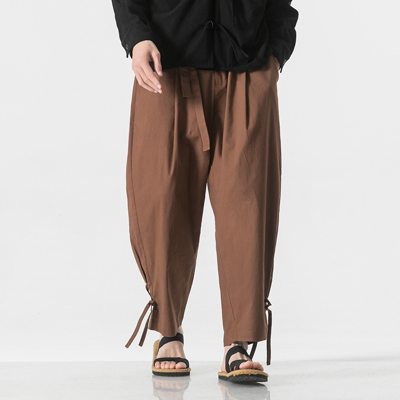 2023 여름 신상품 플러스 사이즈 면과 린넨 바지 패션 중국 스타일 린넨 느슨한 와이드 레그 바지 캐주얼 바지 남성 바지스토어 가기