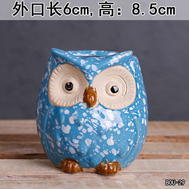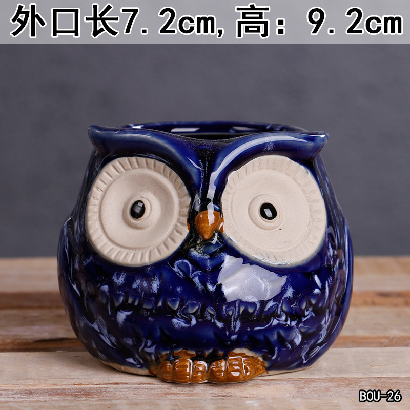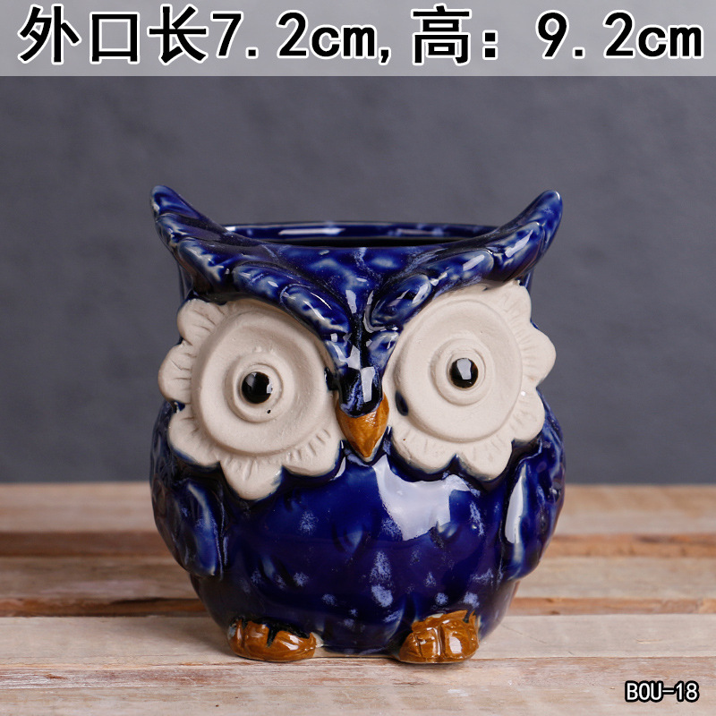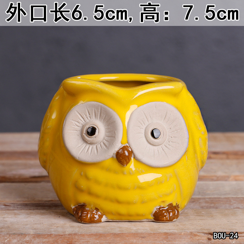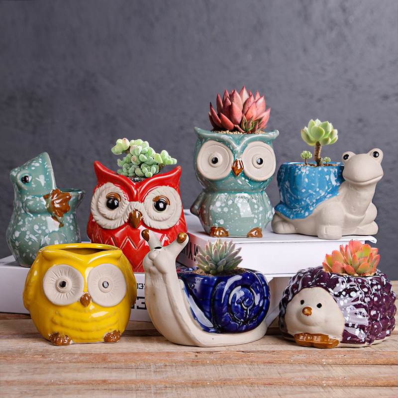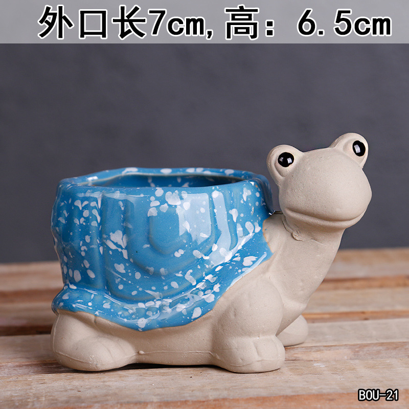 크로스 보더 만화 다육 꽃 냄비 세라믹 정리 심플 대구경 발코니 꽃 귀여운 동물 작은 꽃 냄비 도매