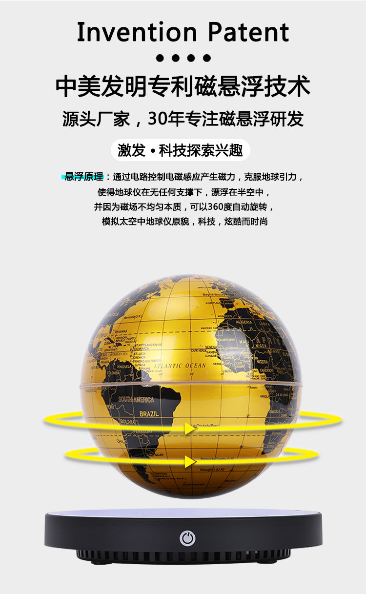 자기 부상 글로브 3D 스테레오 발광 로터 야간 조명 남자 친구 선물 블랙 기술 사무실 데스크탑 장식품