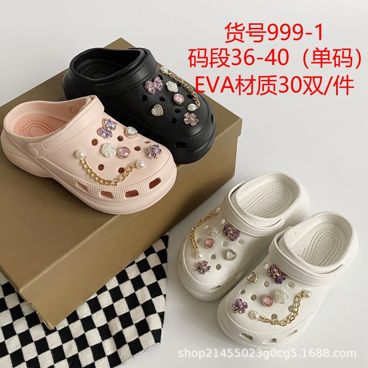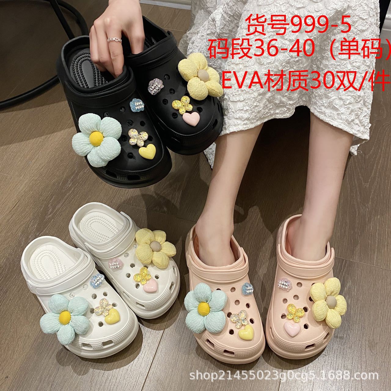 구멍 신발 여성용 두꺼운 밑창 아웃웨어 부드러운 바닥 발가락 샌들 여름 새로운 패션 귀여운 미끄럼 방지 비치 신발 샌들스토어 가기