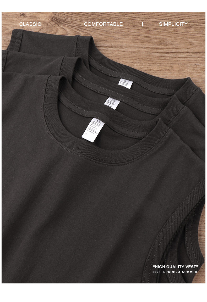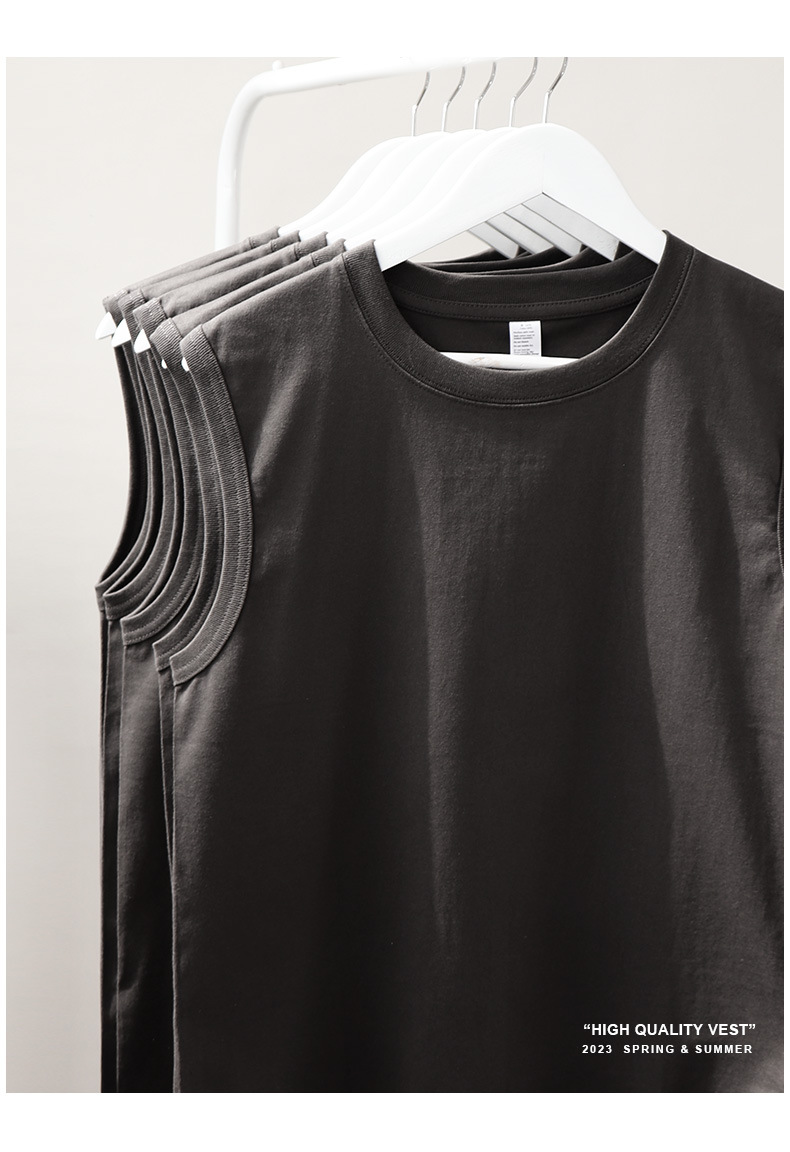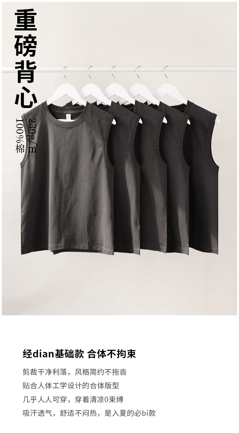일본 230g 헤비급 조끼 신장 코튼 티셔츠 민소매 조커 남성 캐주얼 여성용 작은 목선 와이드 숄더 커플