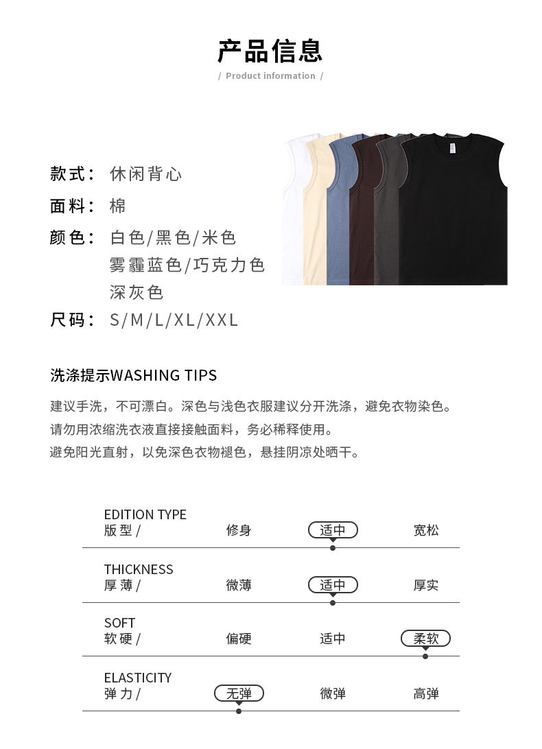 일본 230g 헤비급 조끼 신장 코튼 티셔츠 민소매 조커 남성 캐주얼 여성용 작은 목선 와이드 숄더 커플스토어 가기