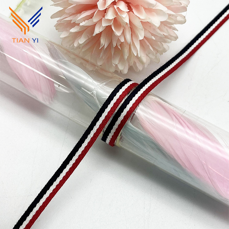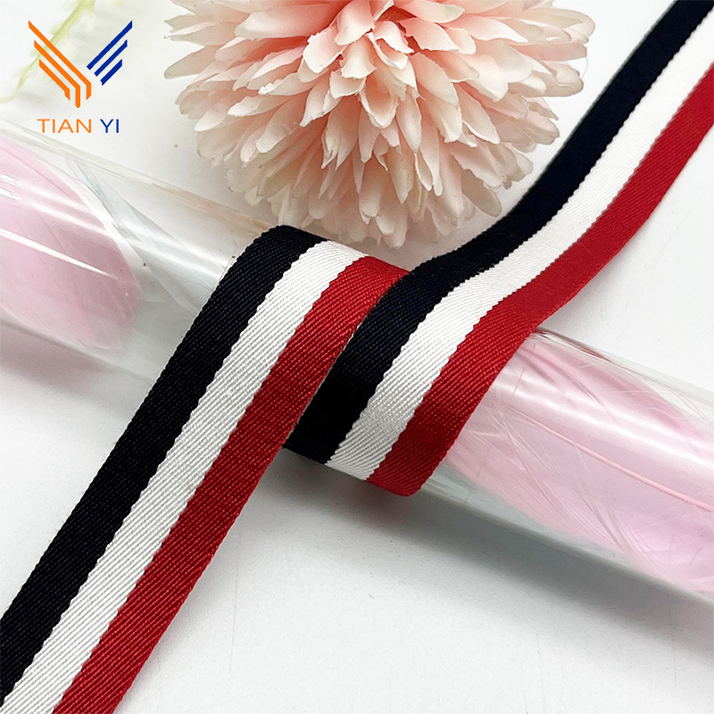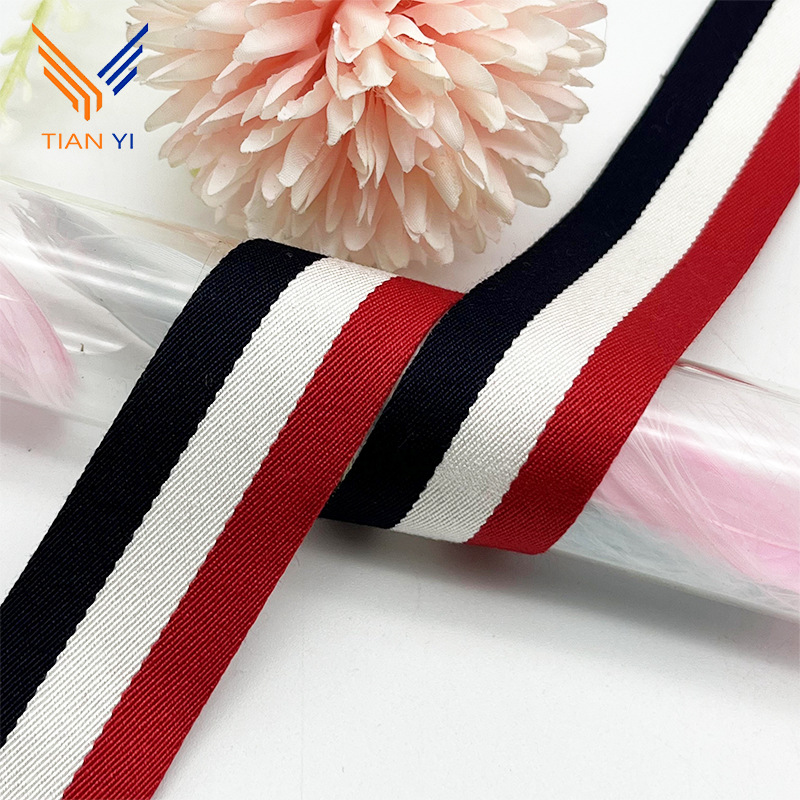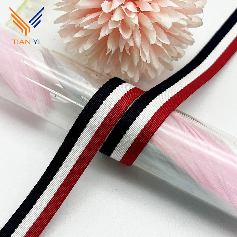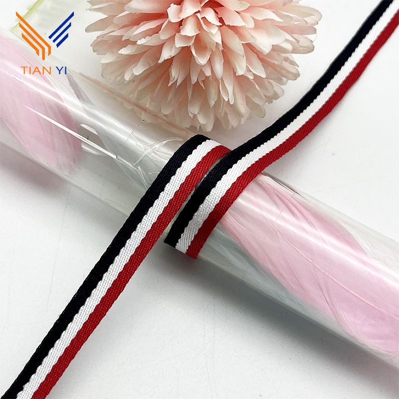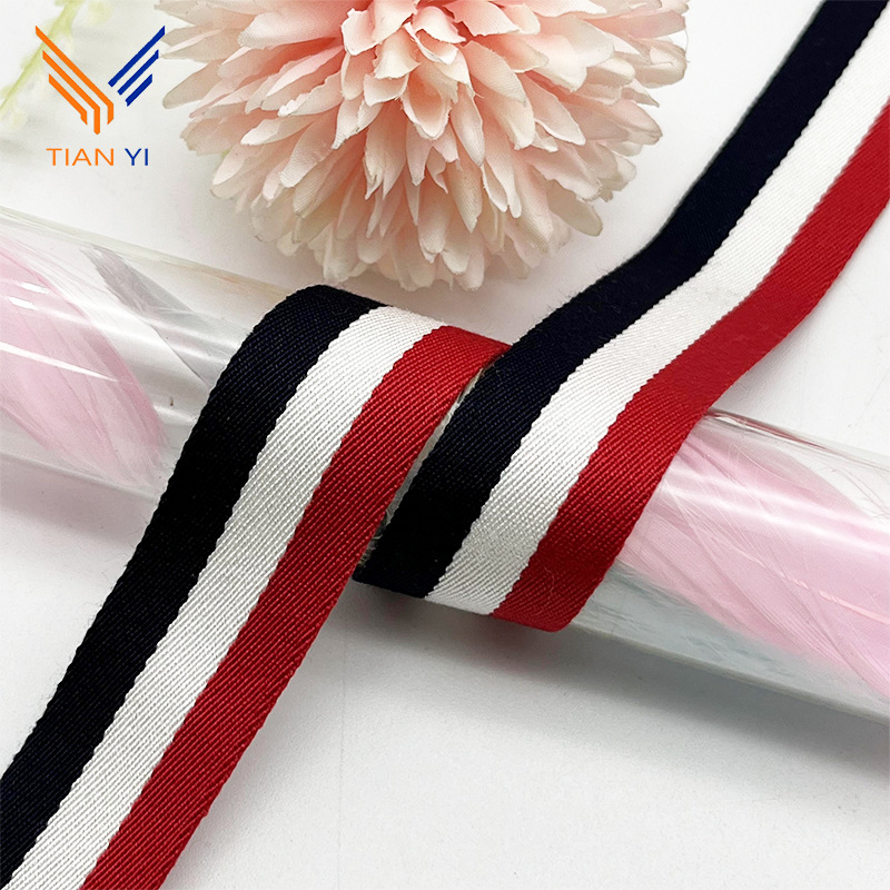 빨강, 흰색 및 파랑 능직 인터컬러 머서라이즈 코튼 자카드 리본 홈 섬유 가방 신발 및 모자 실 캡 포장 벨트 의류 액세서리스토어 가기