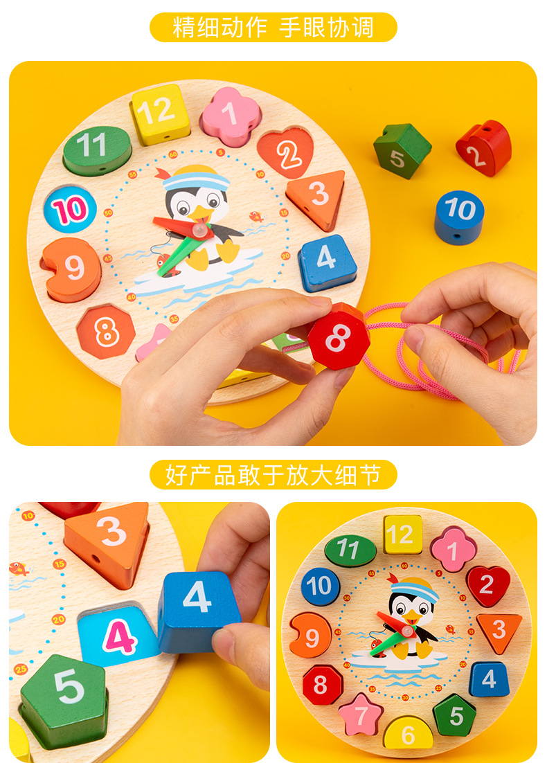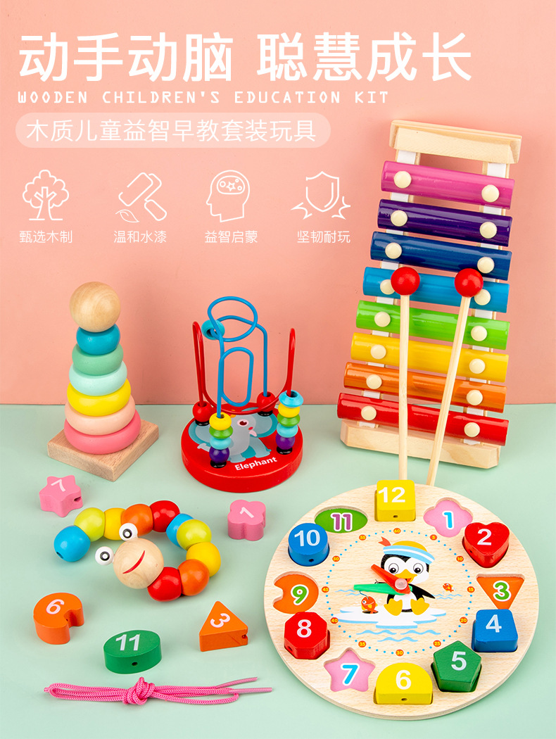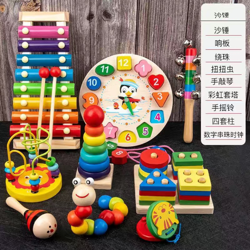 유치원 Orff 타악기 어린이 나무 시계 선물 장난감 비즈 세트 도매스토어 가기