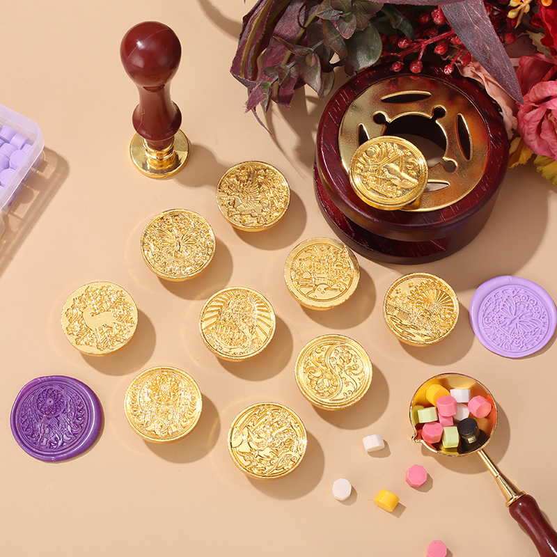 화재 페인트 씰 헤드 아름다운 복고풍 릴리프 인감 봉투 손 계정 화재 페인트 왁스 창조적 인 선물 세트