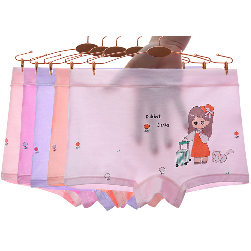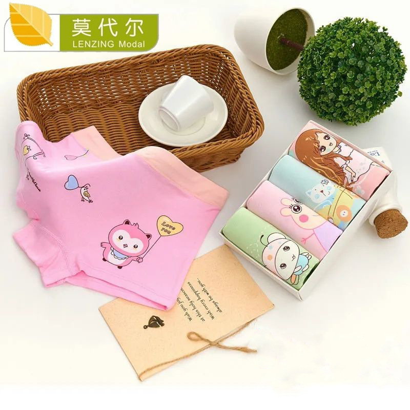 모달 어린이 속옷 아기 작은 중간 큰 어린이 여아 복서 중간 허리 학생 귀여운 만화 복서 반바지스토어 가기