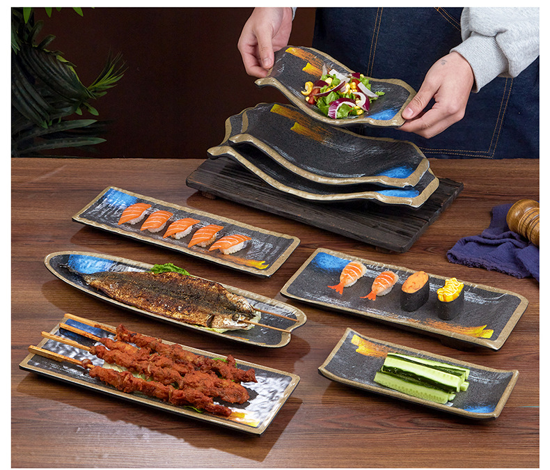 스시 스페셜 플레이트 스시 플레이트 쇠고기 냄비 접시 사시미 플레이트 긴 접시 일본 긴 접시 식기스토어 가기