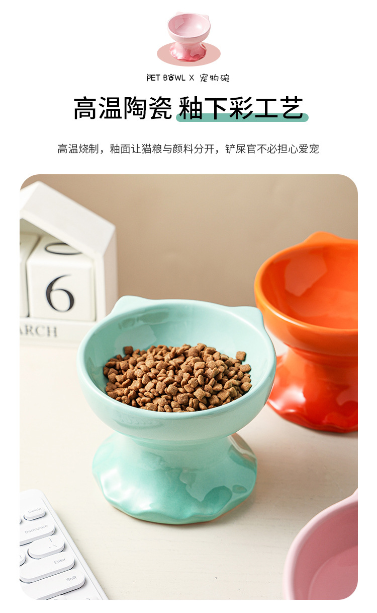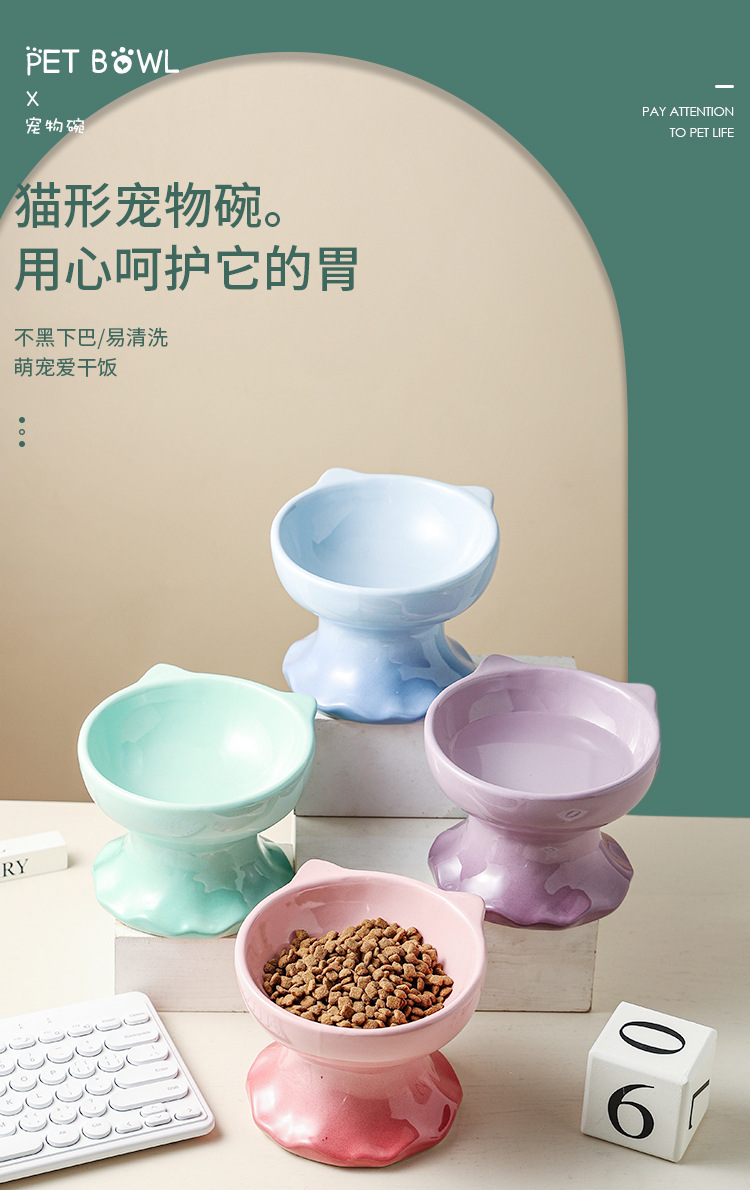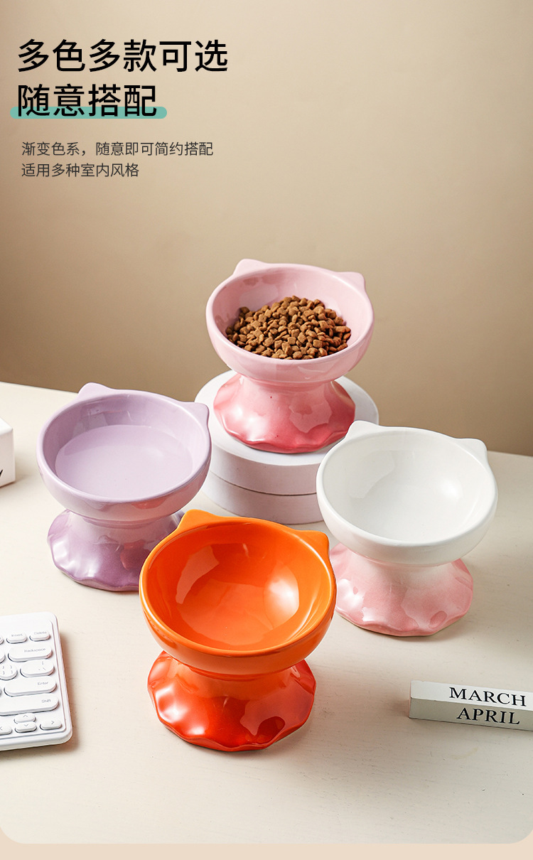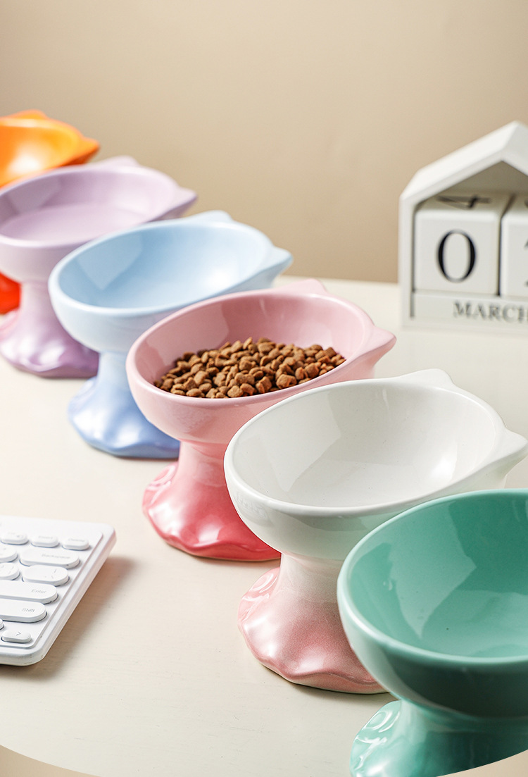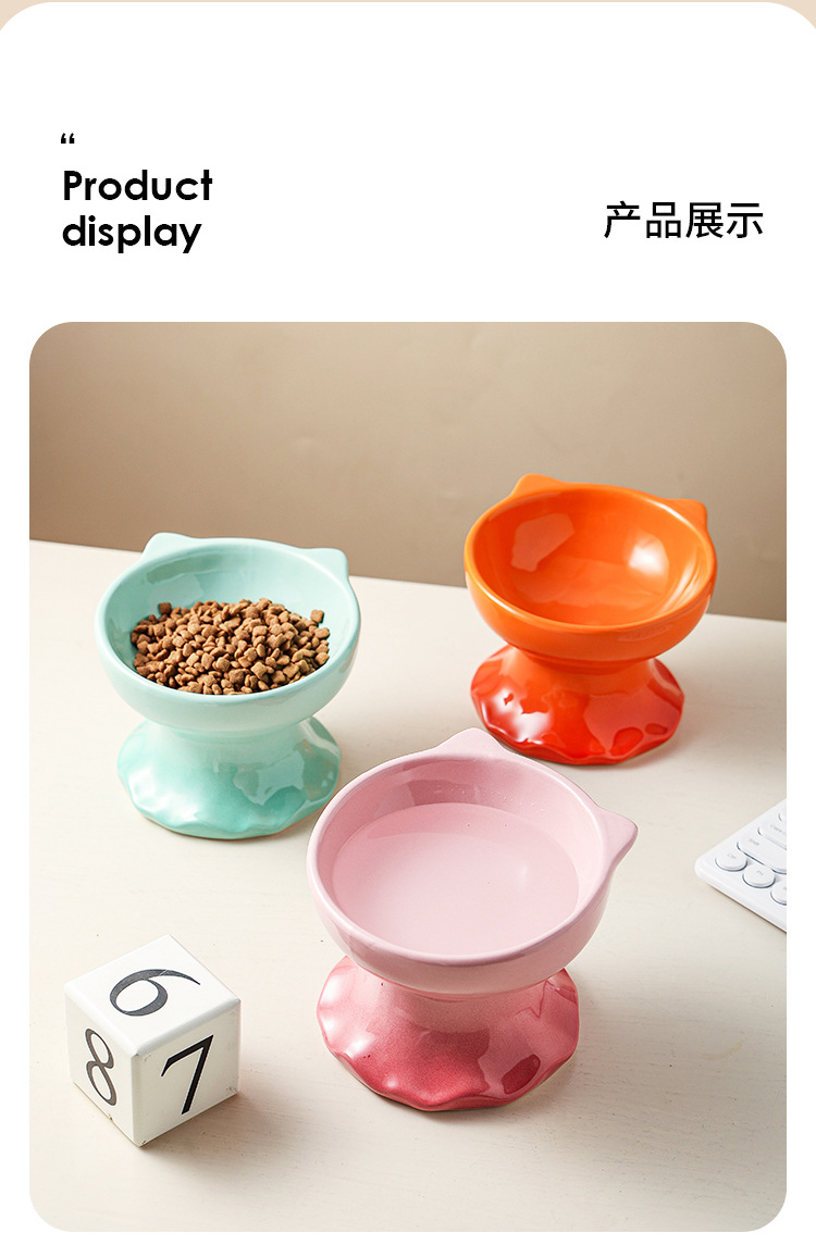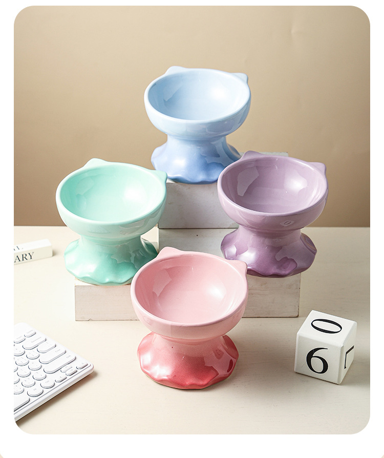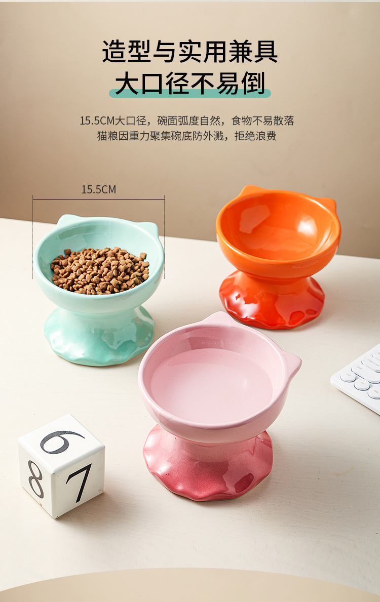고양이 그릇 세라믹 그릇 전복 방지 고양이 분지 보호 경추 고양이 음식 그릇 애완 동물 마시는 그릇 개 그릇 높은 발 밥 그릇 개 분지스토어 가기