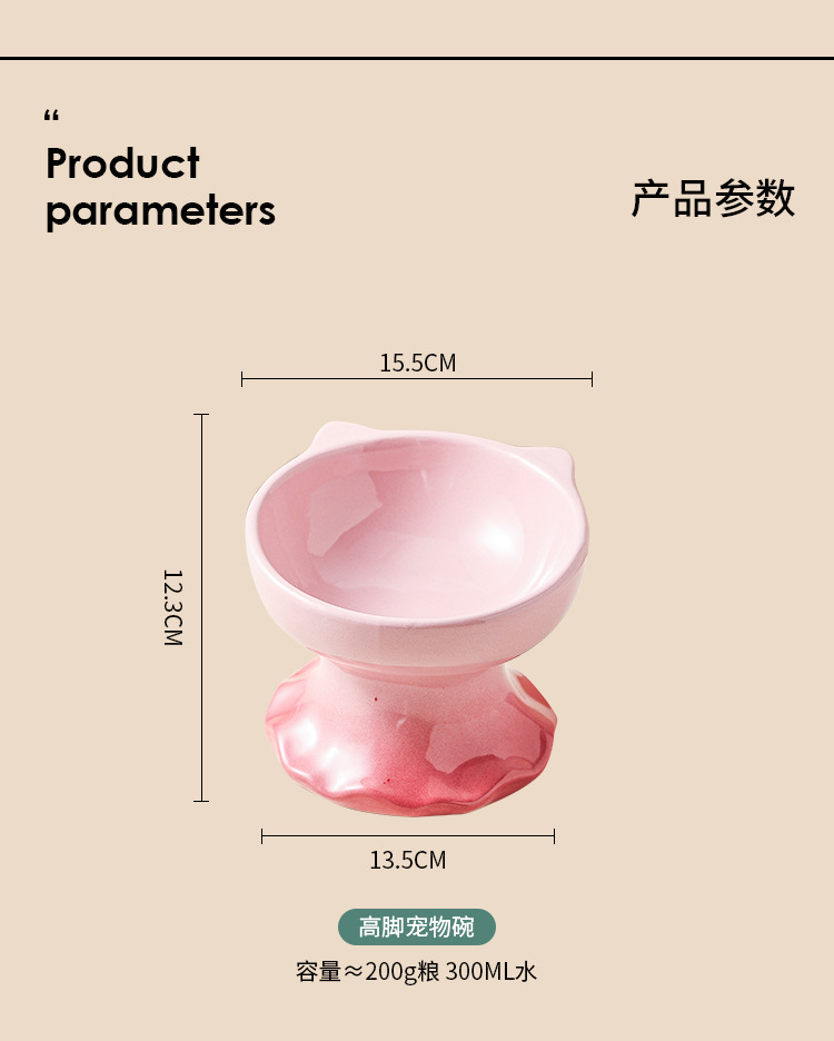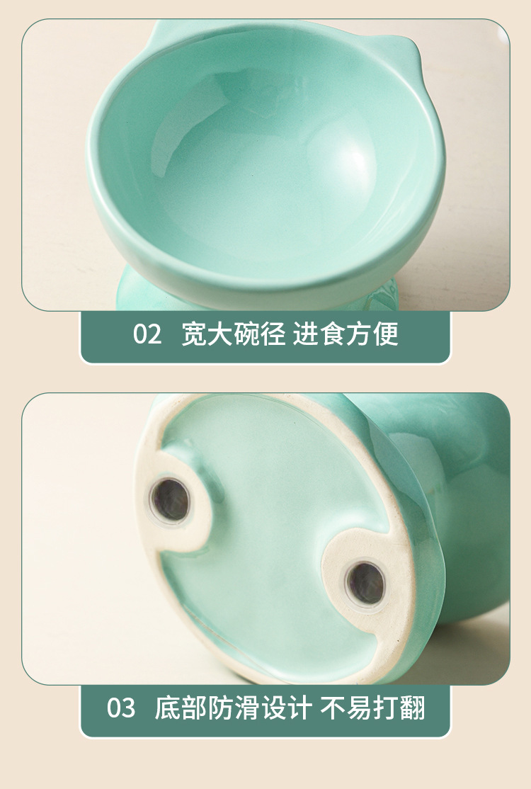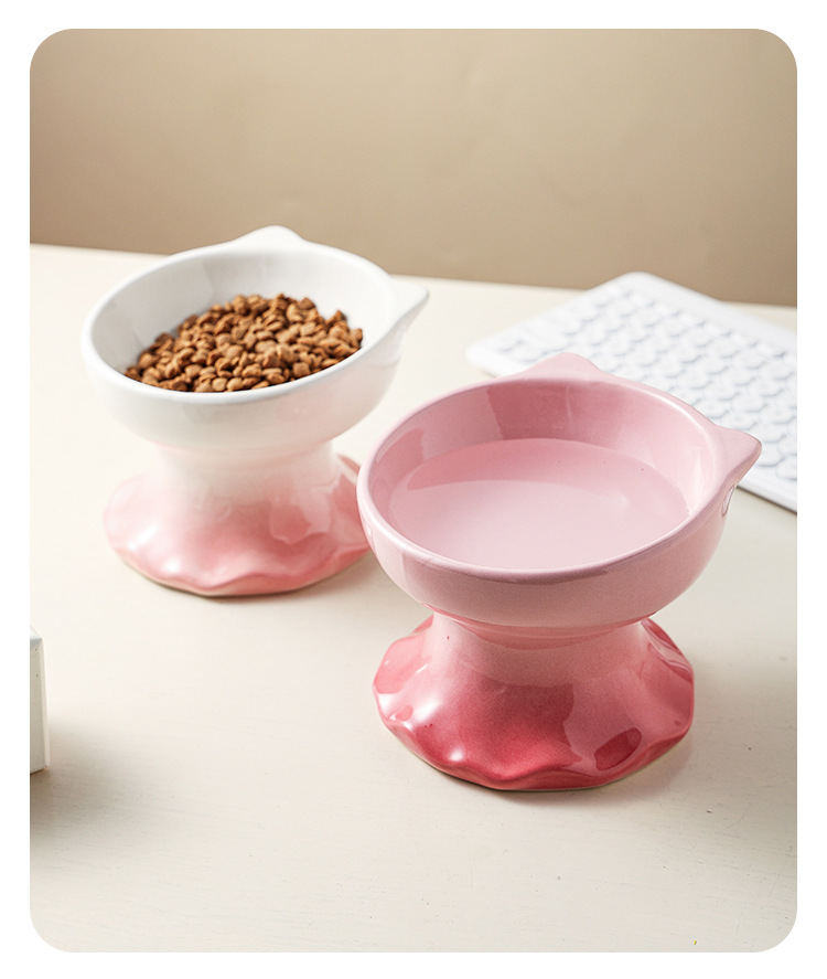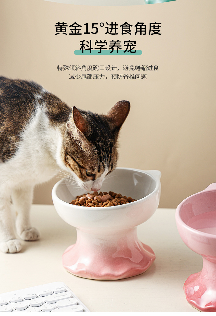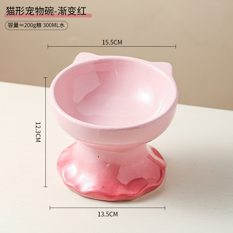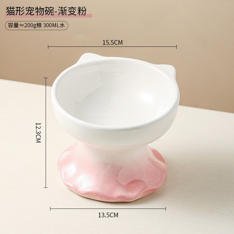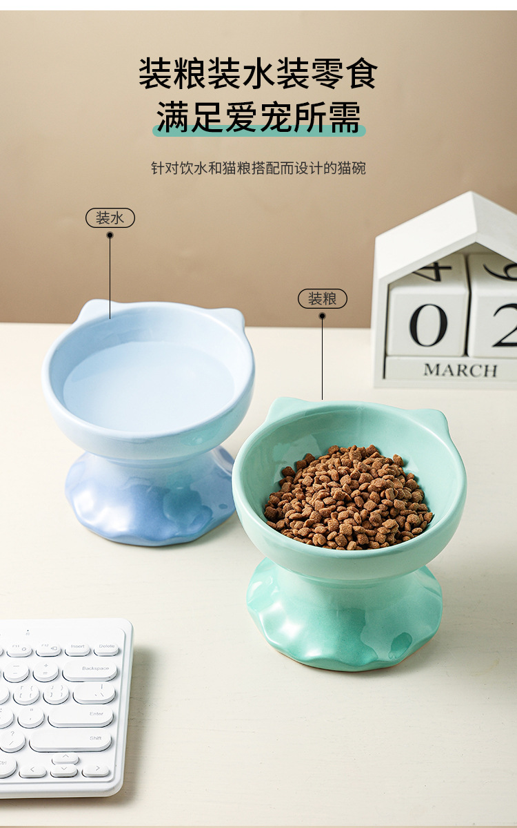 고양이 그릇 세라믹 그릇 전복 방지 고양이 분지 보호 경추 고양이 음식 그릇 애완 동물 마시는 그릇 개 그릇 높은 발 밥 그릇 개 분지
