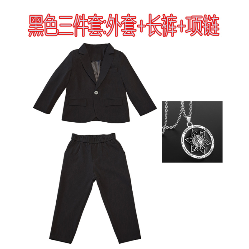 • 블랙 쓰리피스 (재킷 + 바지 + 흰색 티셔츠) 목걸이