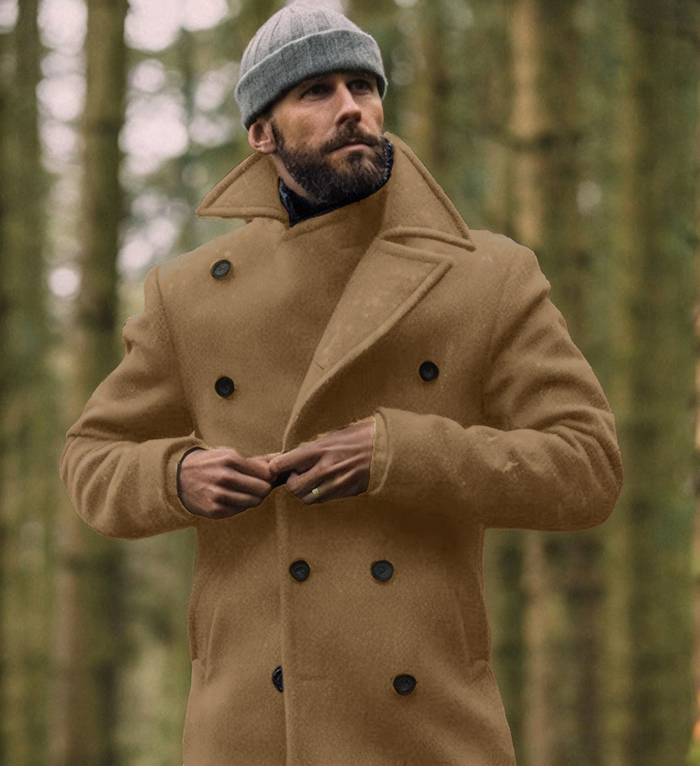 핫세일 남성복 유럽 및 미국 크로스보더 신상 영국풍 남성 중간 길이 모직 코트 가을 겨울 모직 남성 재킷