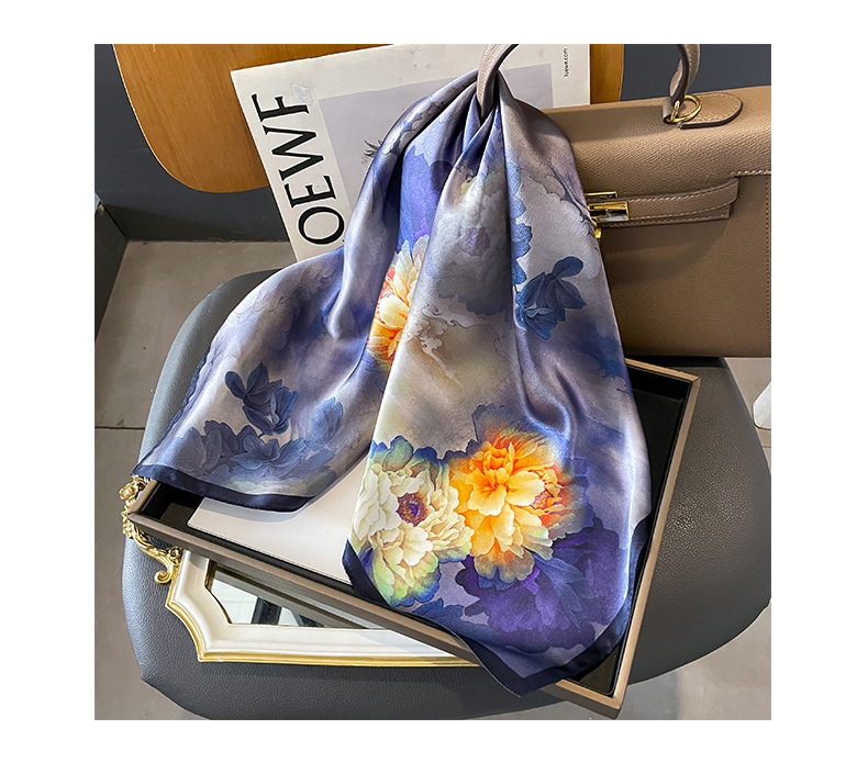 100% 뽕나무 실크 여름 새로운 보라색 꽃 실크 고급 모든 매치 유행 한국 스타일 여성을위한 작은 광장