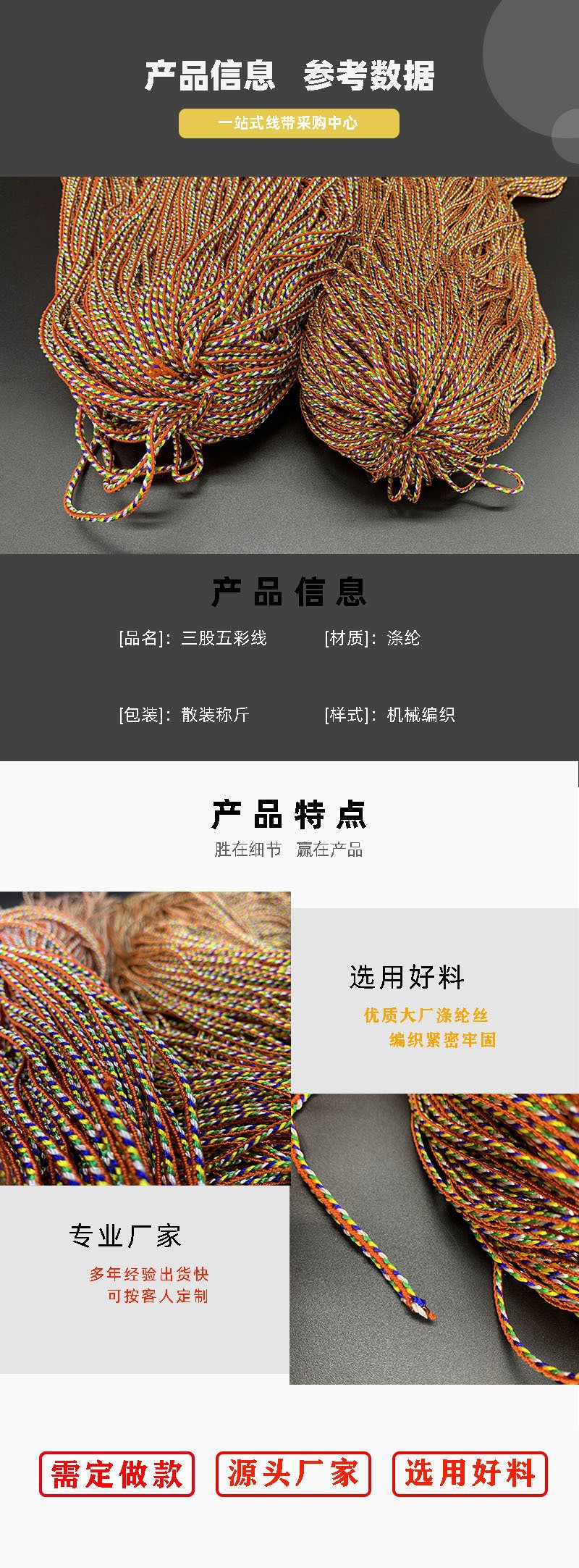 五彩线厂家直销端午节节日饰品线吊绳挂绳1.5mm2.0mm3.0mm手链绳编织绳