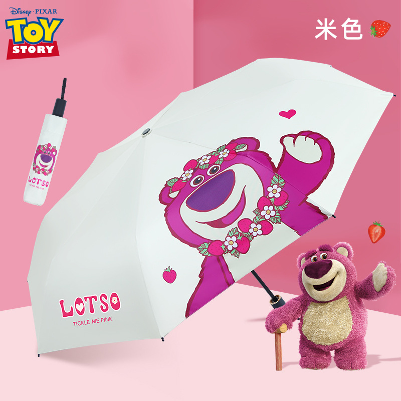 디즈니 접는 우산 소녀 여름 딸기 곰 블랙 접착제 자외선 차단제 우산 대학생 3 배 양산 우산스토어 가기