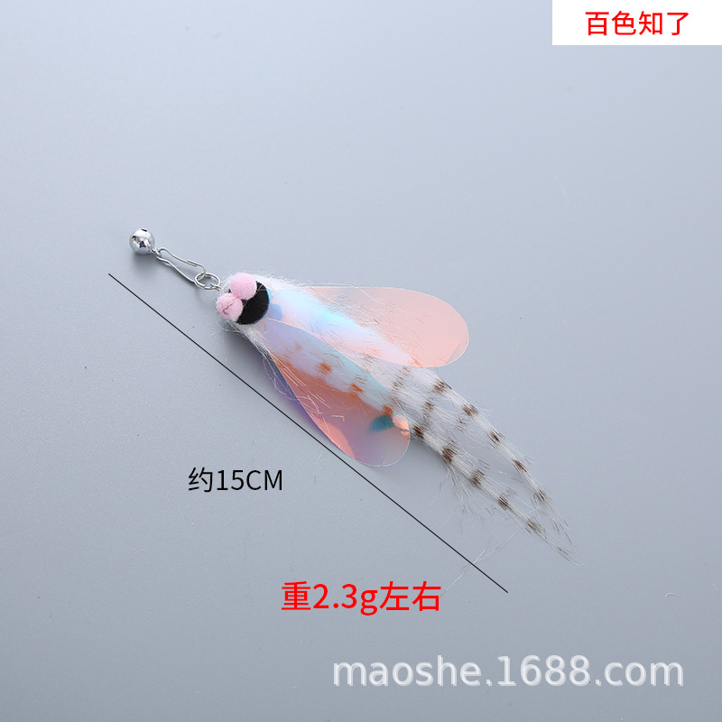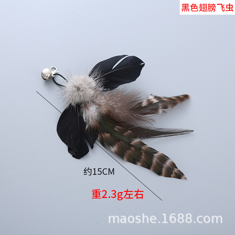 애완 동물 고양이 장난감 고양이 애타게 스틱 깃털 교체 헤드 낚시 고양이 폴 DIY 꿀벌 잠자리 비행 조류 곤충 공장 재고