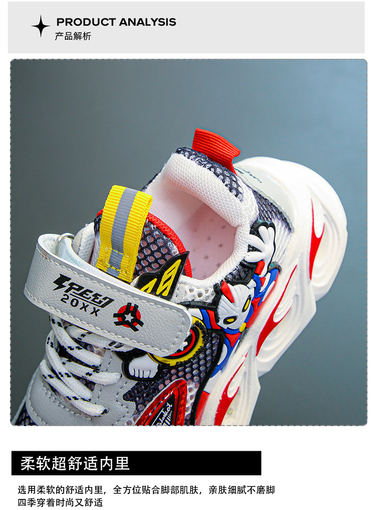 가벼운 글로우 시원한 만화 운동화 단일 메쉬 통기성 소년 신발 토레 신발 여름 어린이 캐주얼 신발스토어 가기