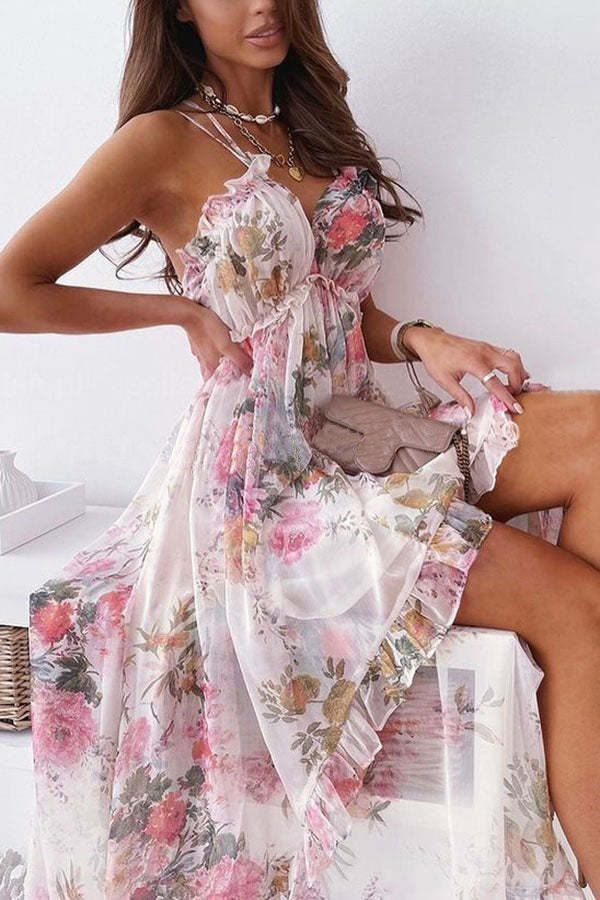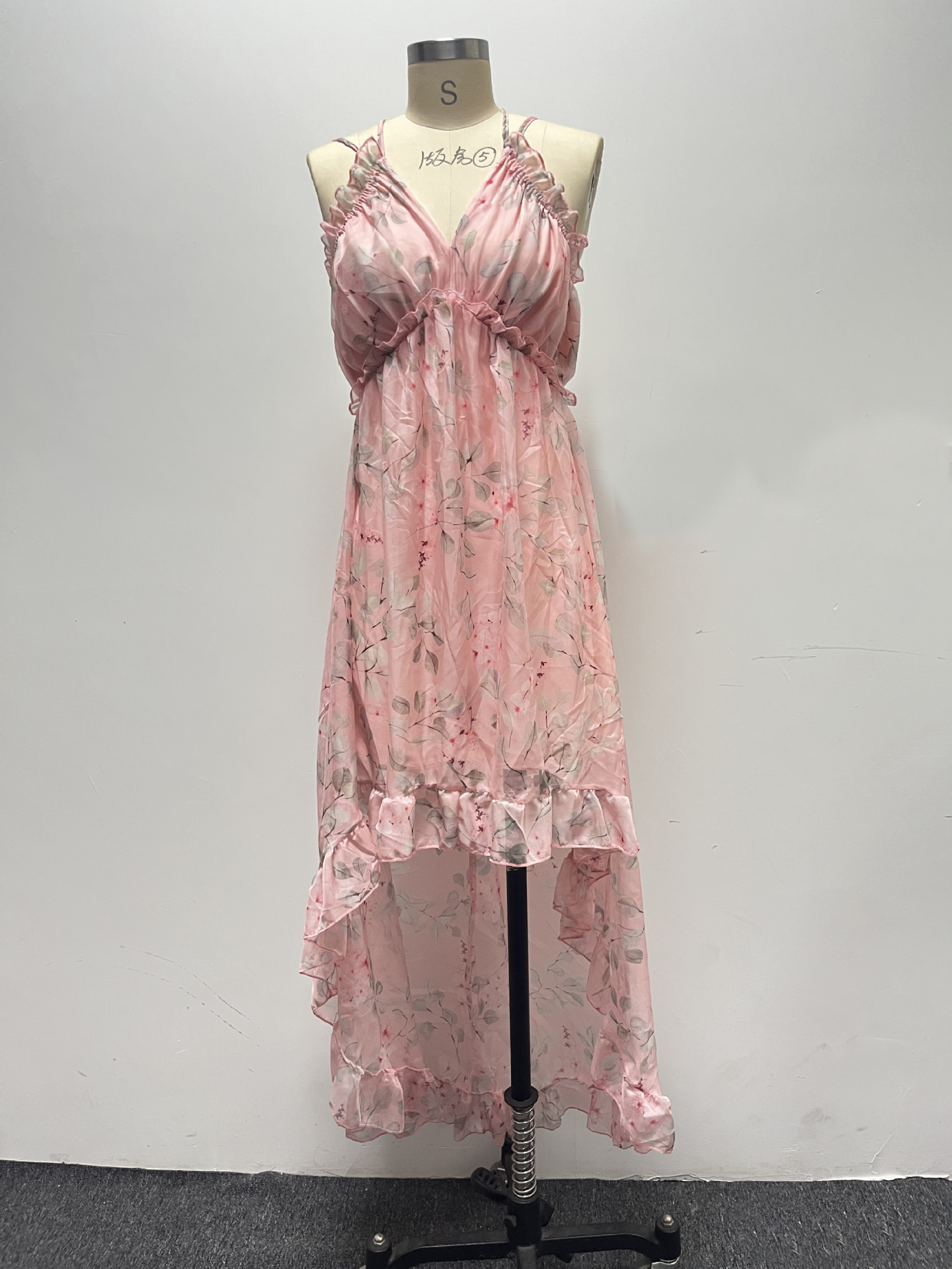 2023 여름 유럽과 미국 크로스 국경 아마존 대외 무역 새로운 패션 달콤한 기질 요정 인쇄 스트랩 원피스