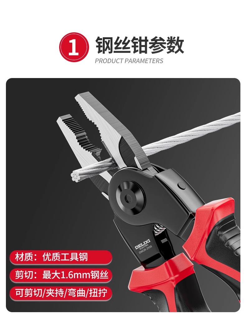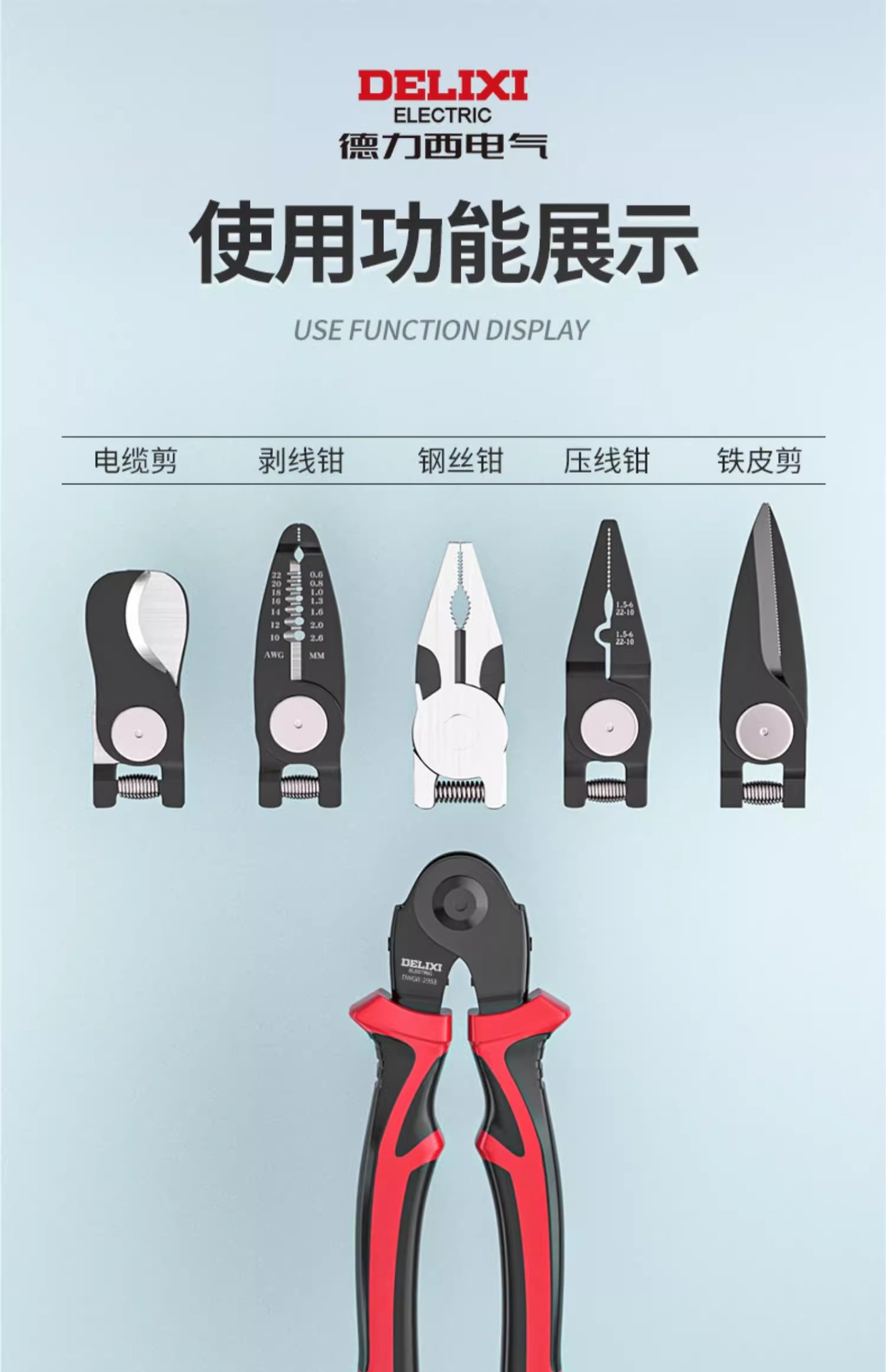Delixi 전기 기술자의 플라이어 변경 가능한 헤드 다기능 와이어 스트리퍼 와이어 플라이어 철 가위 전기 기사 용 1 드래그 5 플라이어스토어 가기