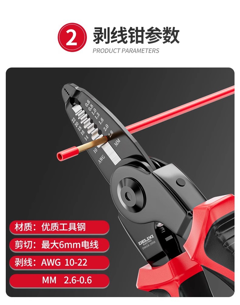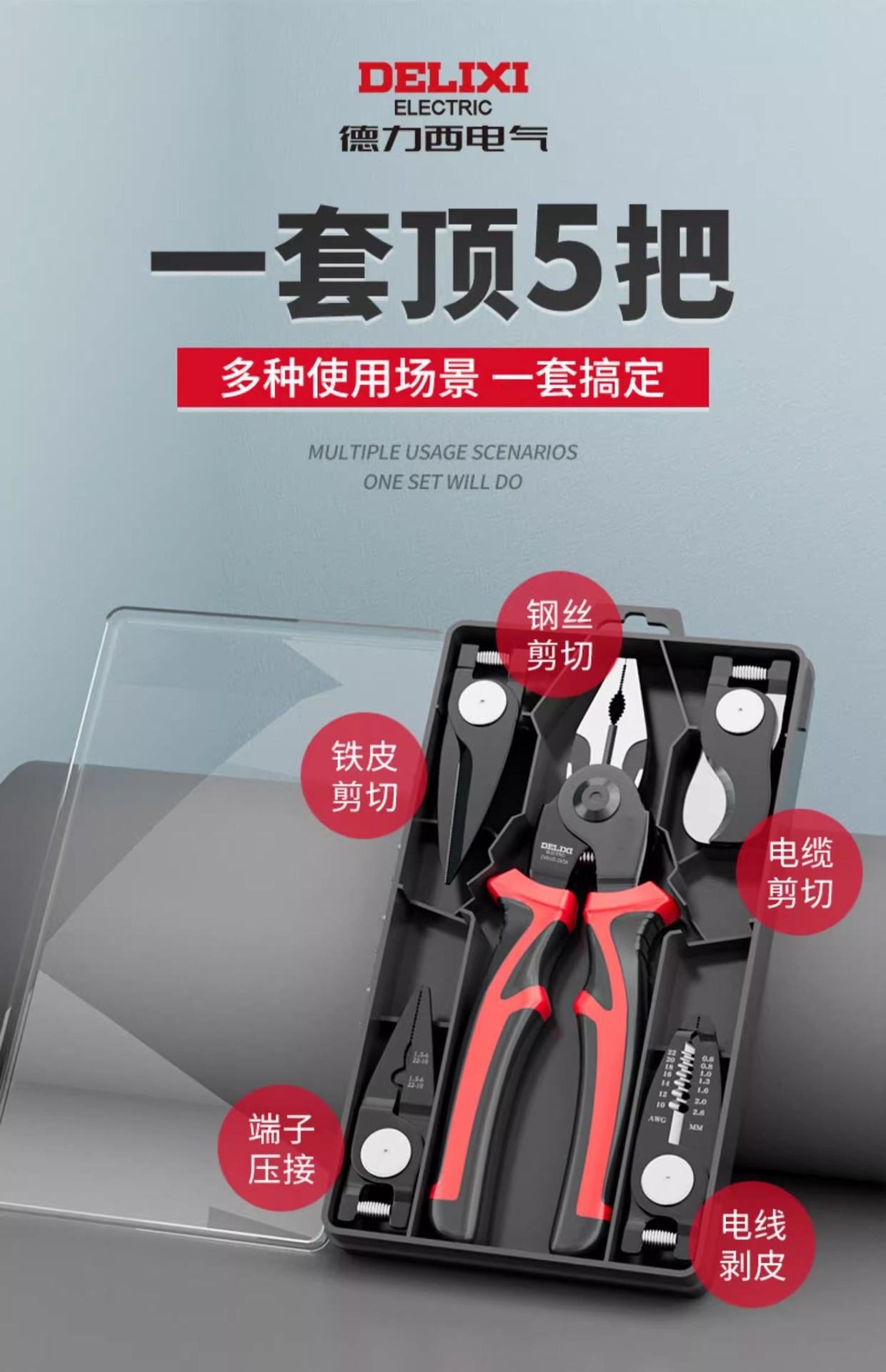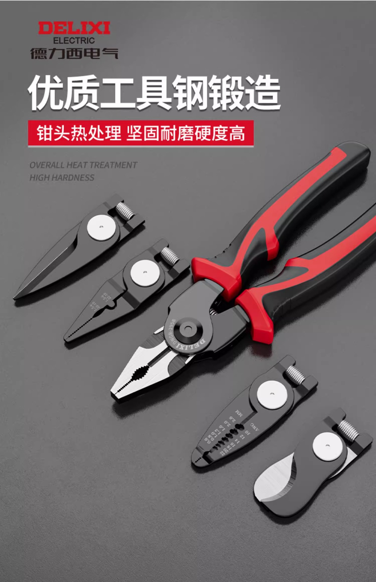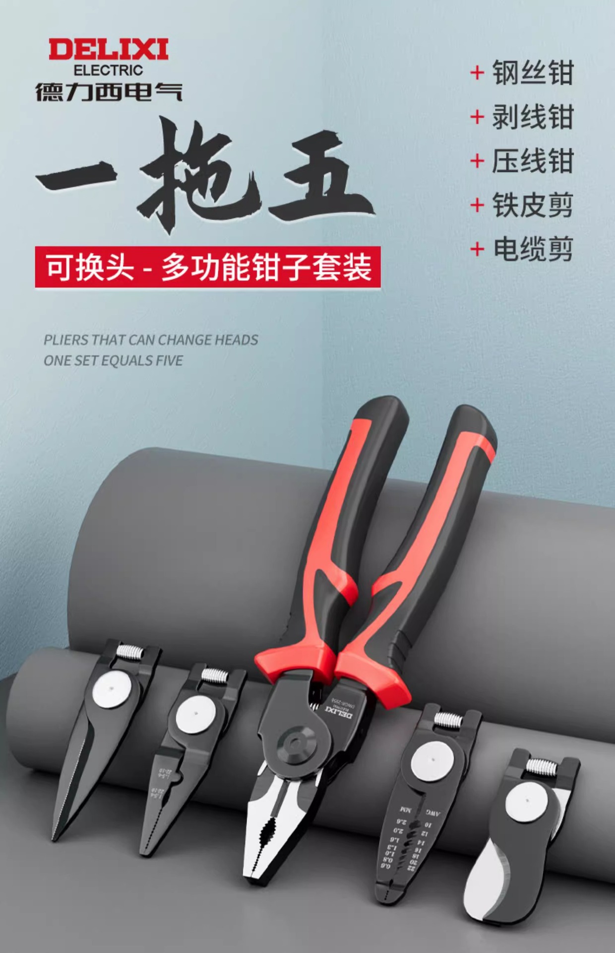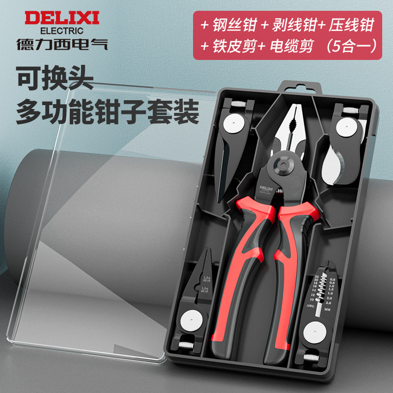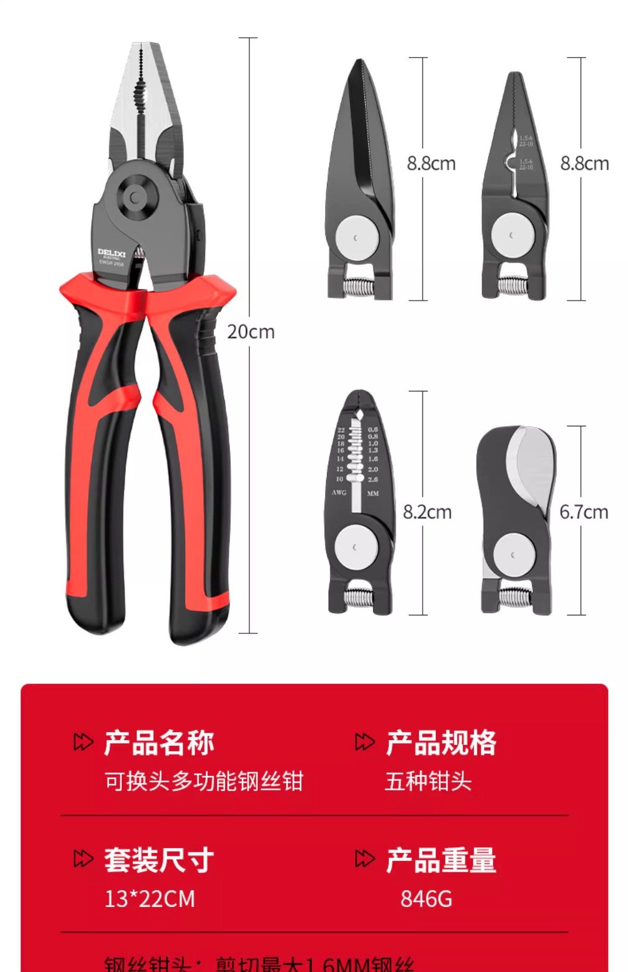 Delixi 전기 기술자의 플라이어 변경 가능한 헤드 다기능 와이어 스트리퍼 와이어 플라이어 철 가위 전기 기사 용 1 드래그 5 플라이어