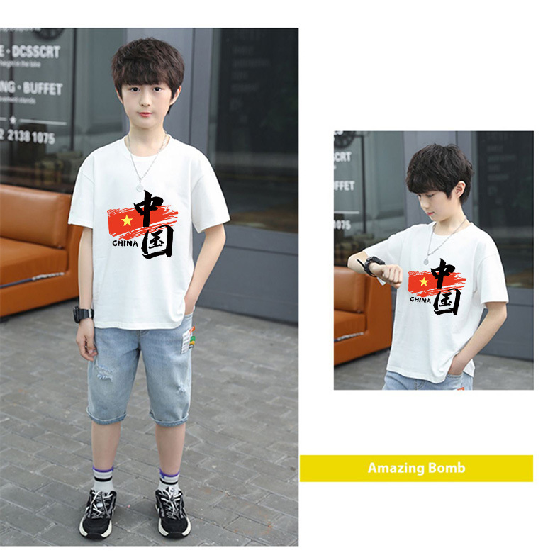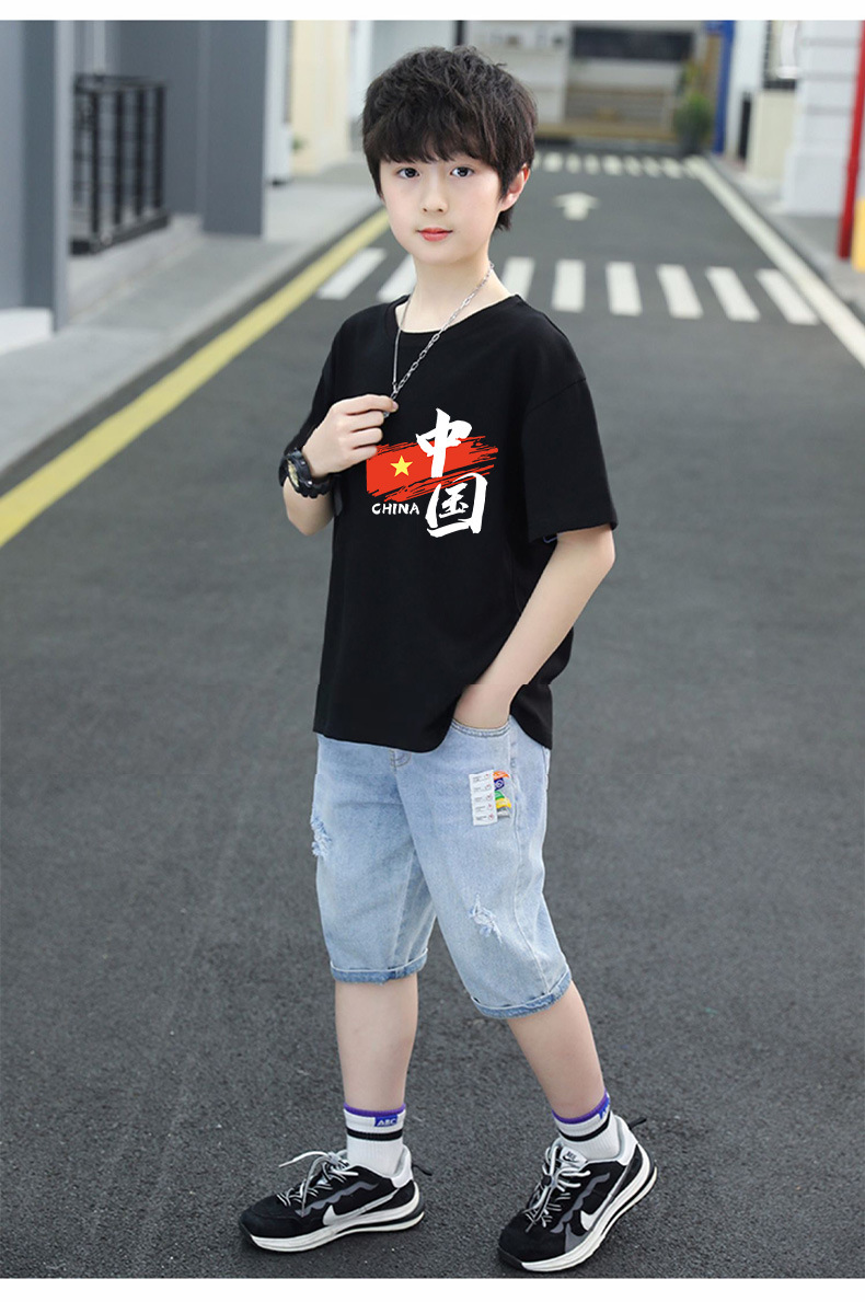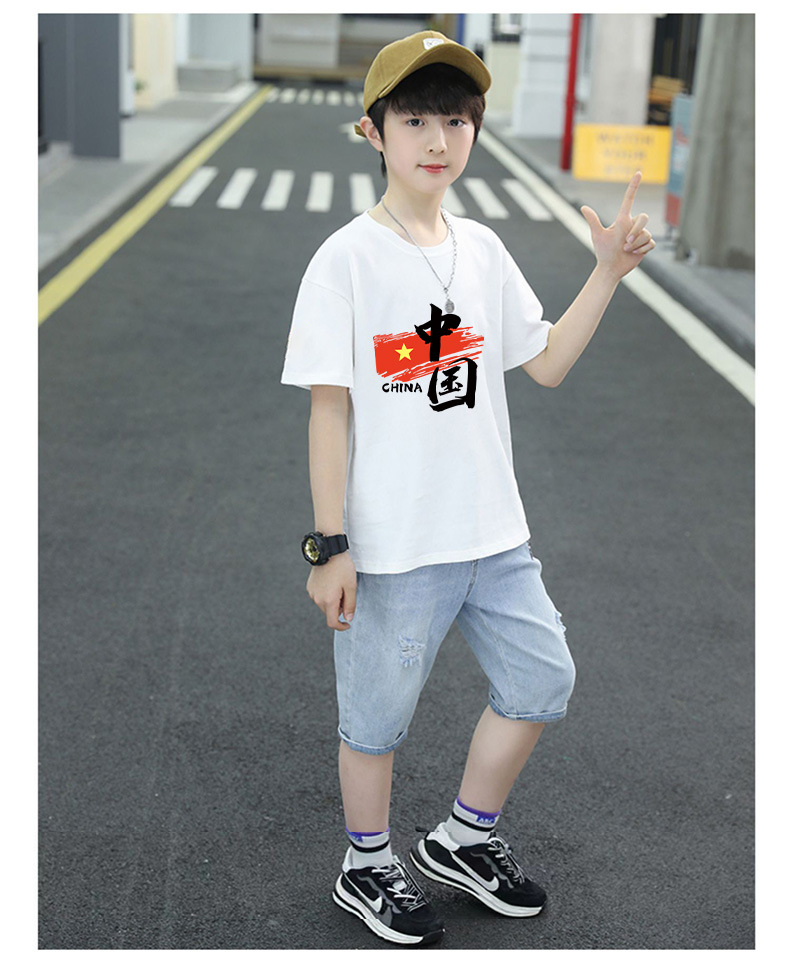 아동복 소년 여름 반팔 티셔츠 2024 새로운 큰 아이들 흰색 반팔 얇은 통기성 패션 인쇄 옷스토어 가기
