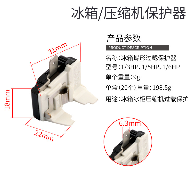 직매 범용 냉장고 냉동고 압축기 과열 과부하 프로텍터 버터플라이 플러그인형 DRP 스타터 1/2HP스토어 가기