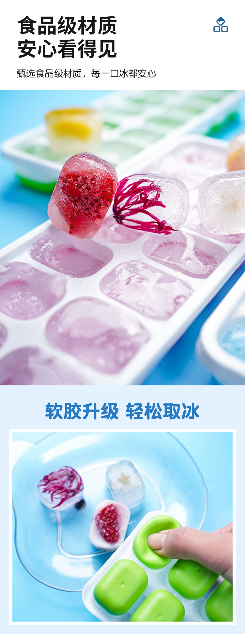 软胶冰块模具冰格带盖制冰盒冰箱家用自制易脱模网红制冰神器冰袋