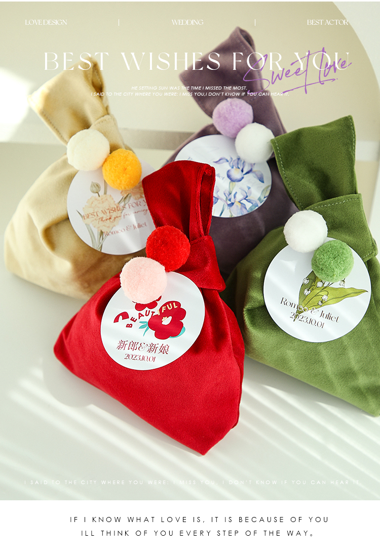 엘리베이터 캔디 백 해피 데이 라이센스 캔버스 아기 벨벳 느낌 웨딩용 천 가방